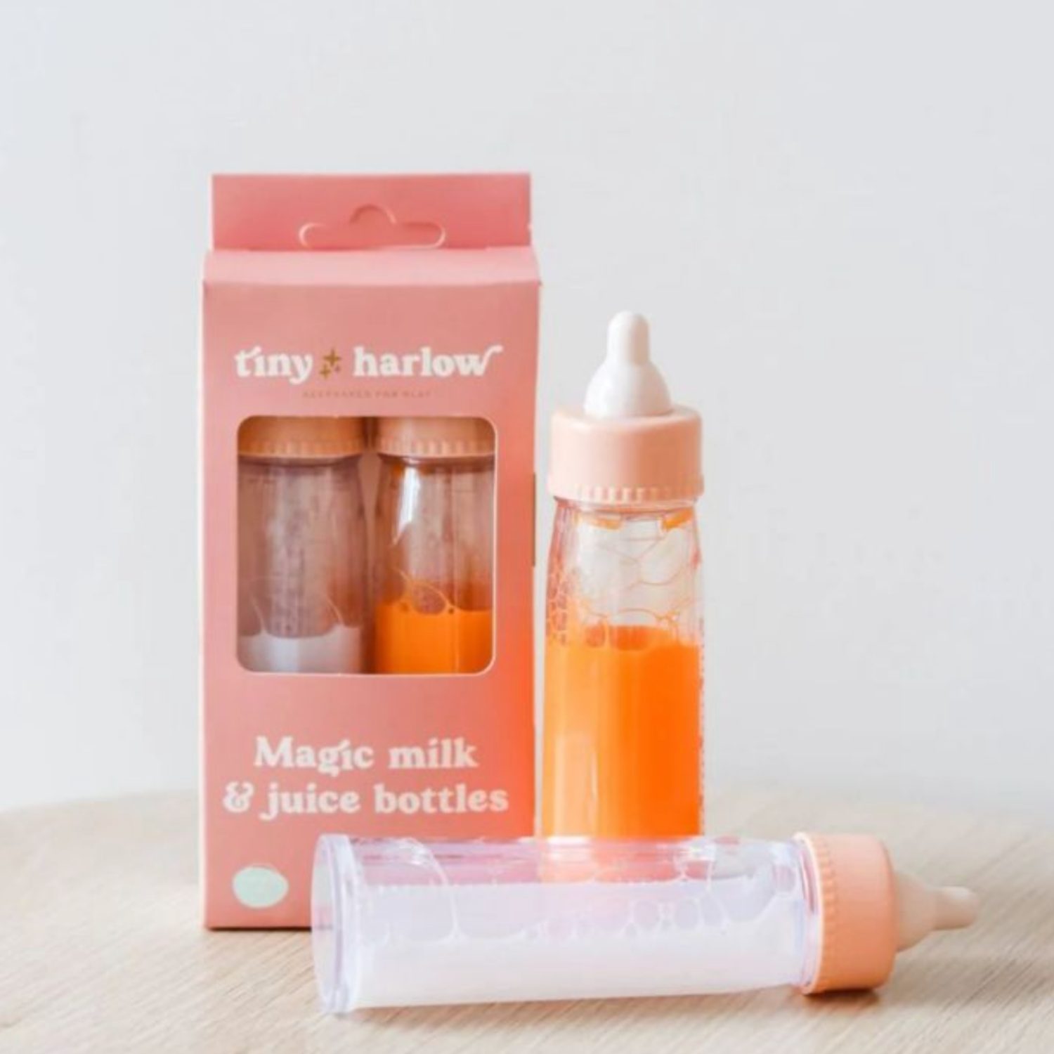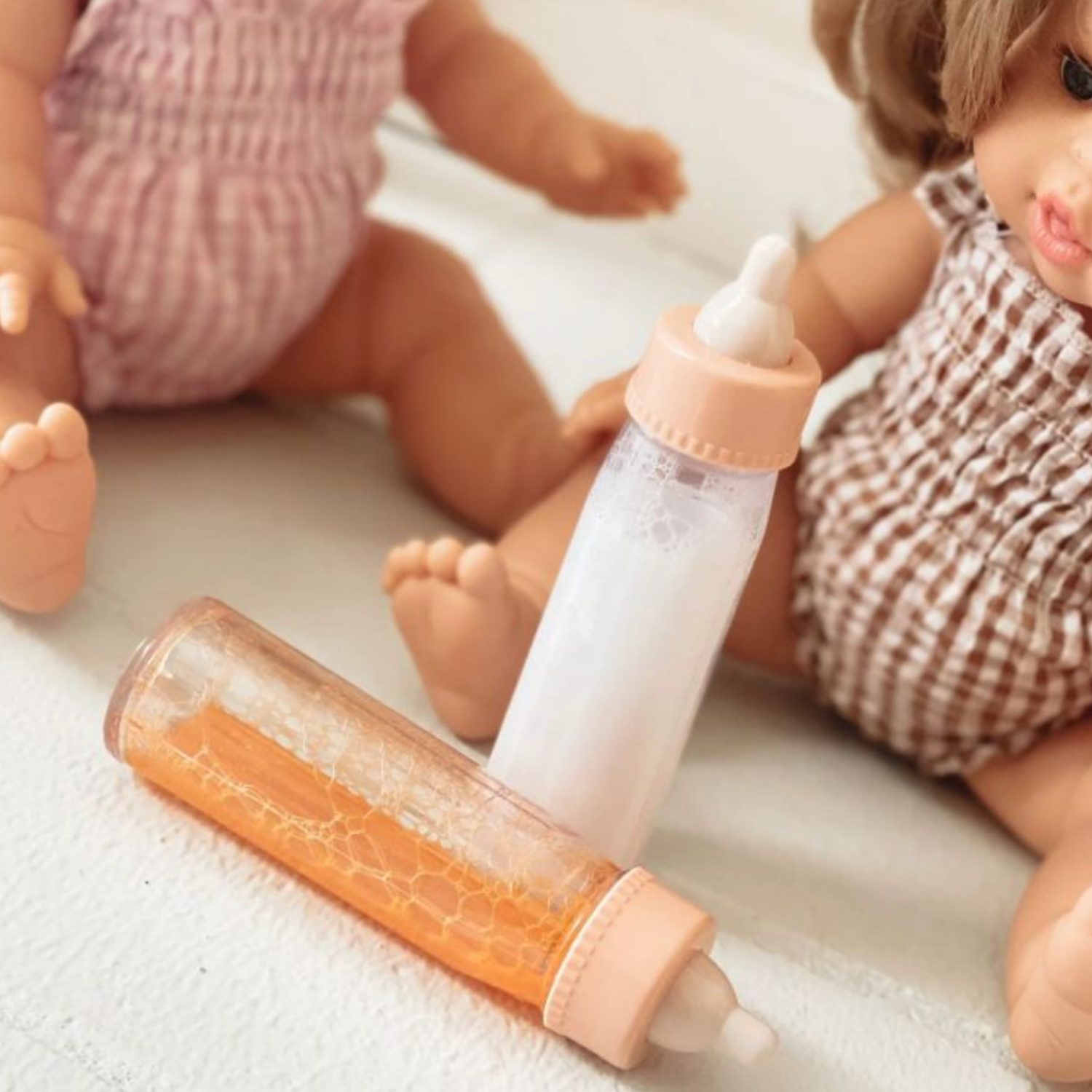 Un duo parfait pour nourrir sa poupée comme un vrai bébé ! Ce set comprend deux biberons magiques : un “lait” et un “jus”. Quand l’enfant incline le biberon, le liquide disparaît comme par magie, puis réapparaît une fois remis en position verticale.