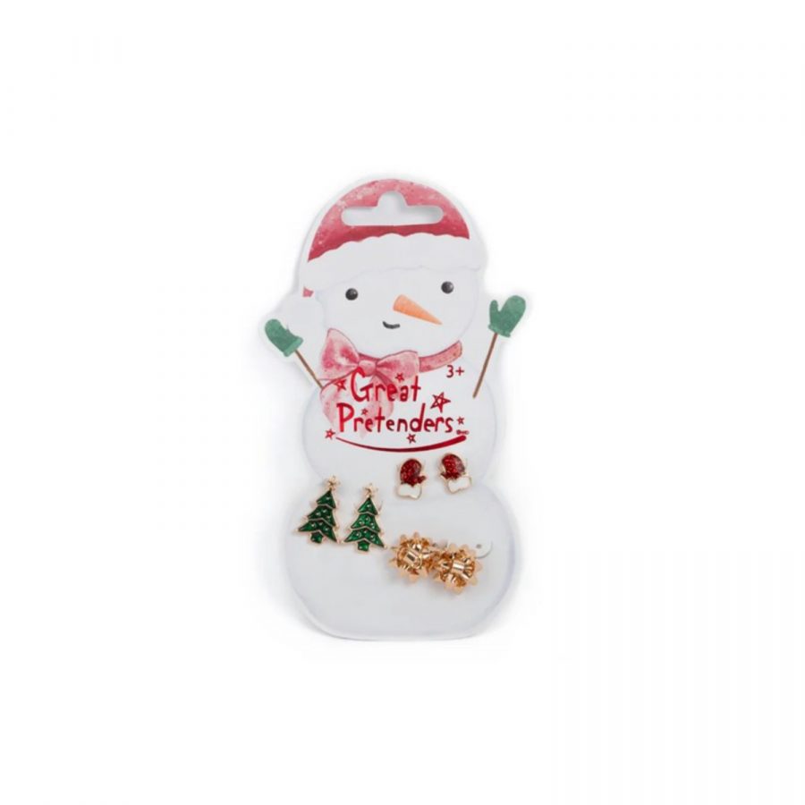 - Lot de 3 paires de boucles d’oreilles festives : moufles, flocons et sapins.