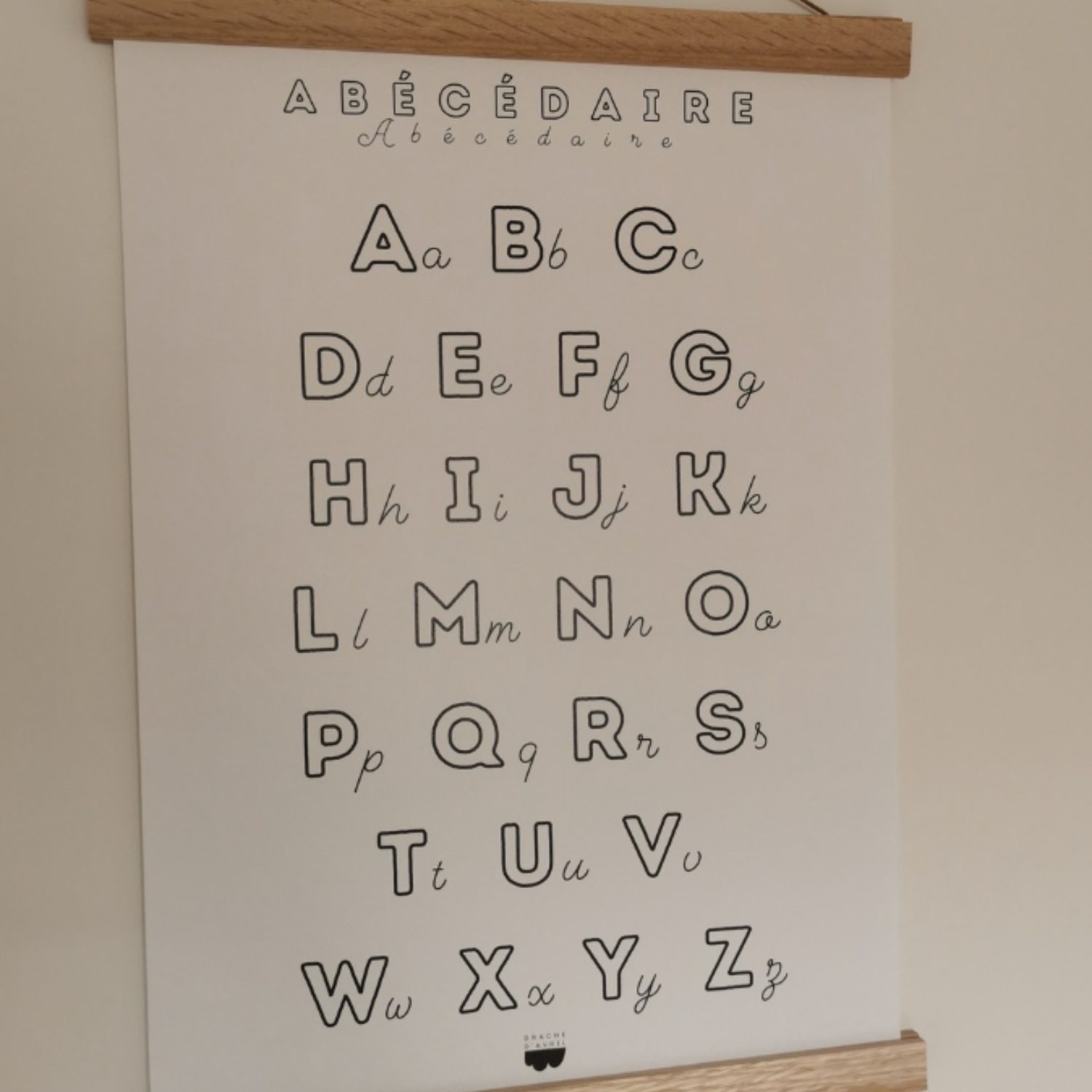 Un abécédaire à colorier en format A3 sur papier épais et texturé. Idéal pour apprendre les lettres tout en développant la créativité des enfants.