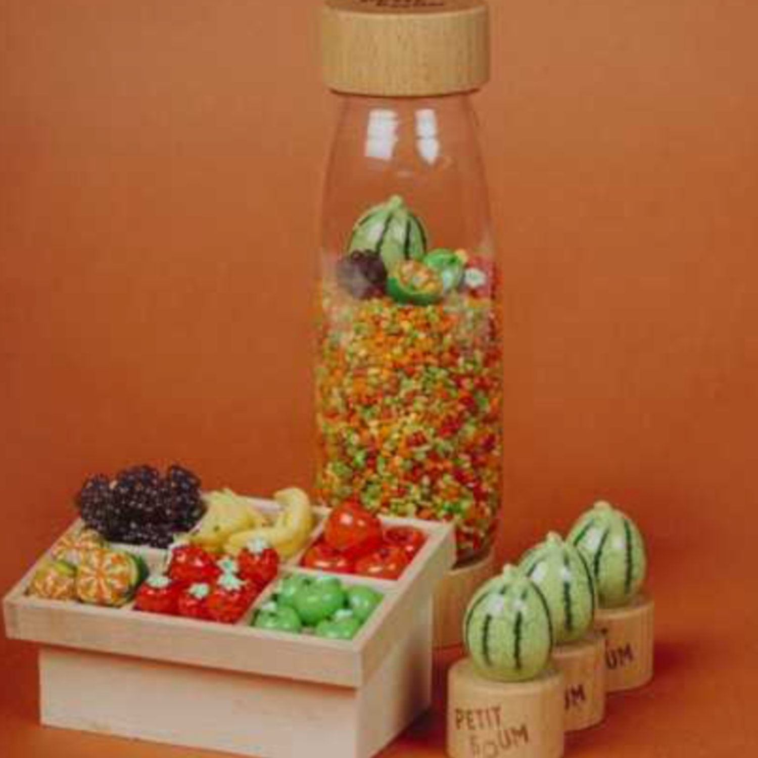Un concentré de bonne humeur pour les tout-petits ! Avec la bouteille sensorielle Fruits, bébé découvre un monde coloré et vitaminé. Bananes, fraises, raisins… chaque secousse fait bouger les petits éléments et capte son attention. Ce jouet d’éveil sensoriel stimule la vue, l’ouïe et la concentration, tout en favorisant la détente. Légère, incassable et totalement sûre, elle accompagne bébé à la maison comme en balade.