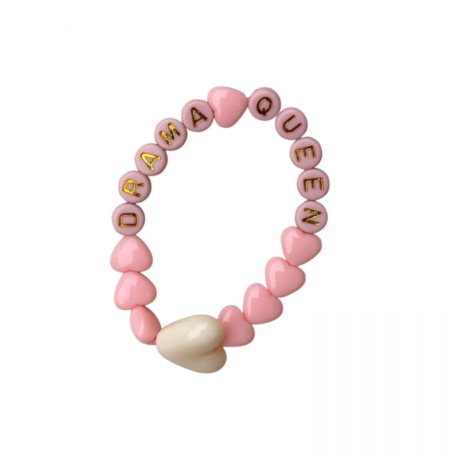 Ce bracelet coloré et plein de personnalité est un accessoire fun à porter au quotidien. Composé de perles en acrylique rose et blanc, il affiche en lettres dorées le message Drama Queen, idéal pour affirmer son style avec une touche de caractère.