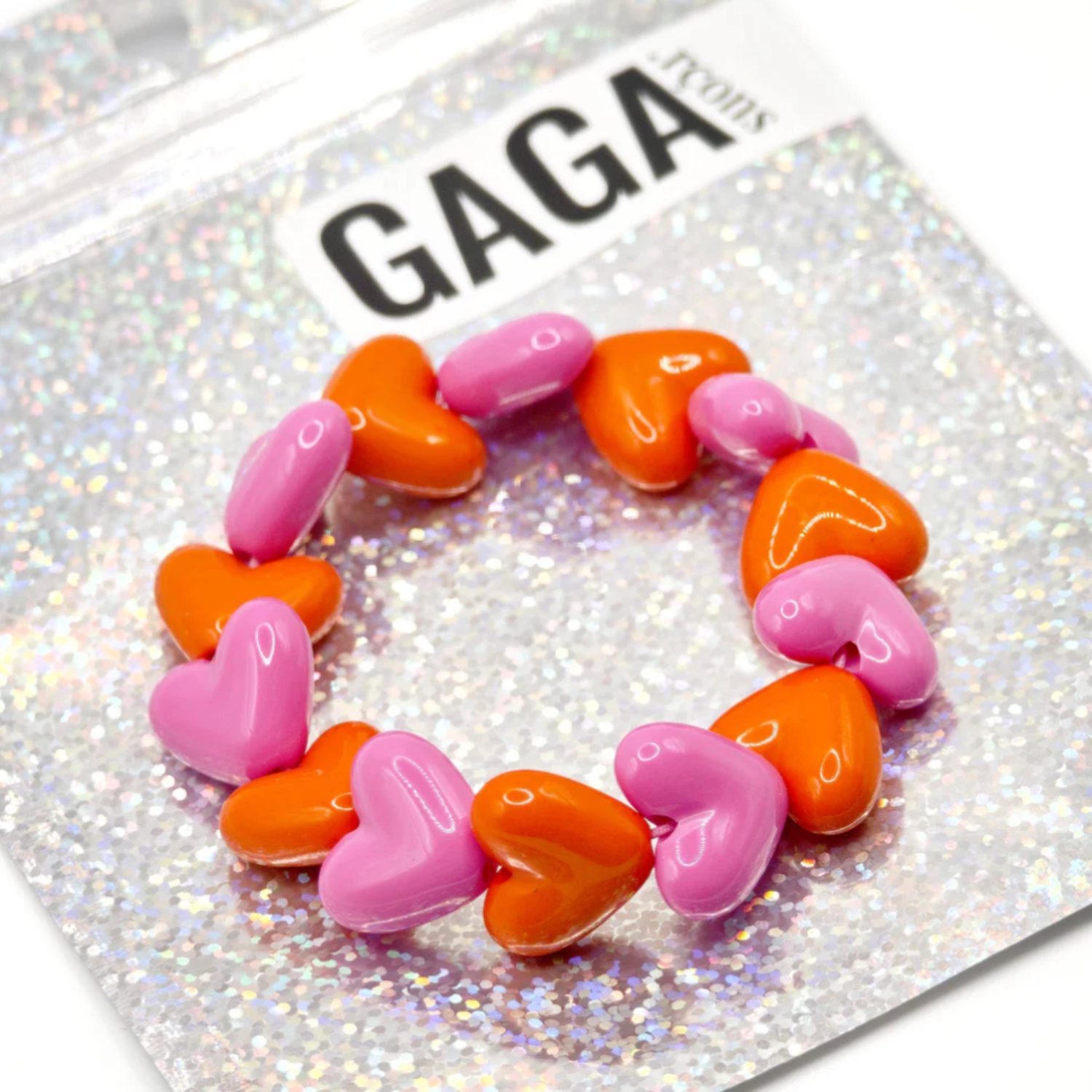 Bracelet maxi coeurs Gaga – Rose/orange