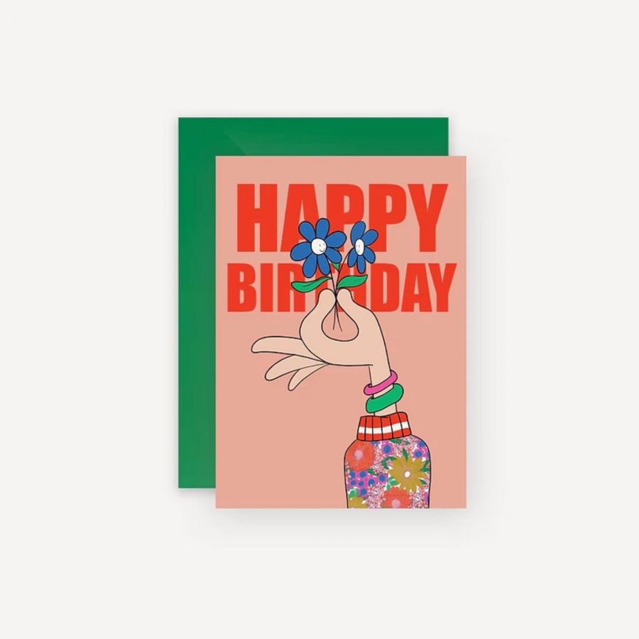 Cette carte au design graphique en forme de main et aux tons roses apporte une touche tendre et moderne à toutes vos attentions. Elle est parfaite pour dire je t’aime, accompagner un cadeau ou simplement envoyer un mot doux sans occasion particulière.