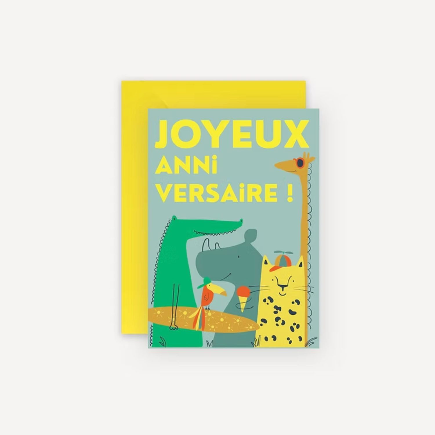 Parfaite pour souhaiter un joyeux anniversaire de façon originale et colorée, elle convient aussi bien aux petits explorateurs qu’aux amoureux des animaux. Une carte joyeuse à offrir seule ou avec un cadeau, qui se garde souvent en souvenir.