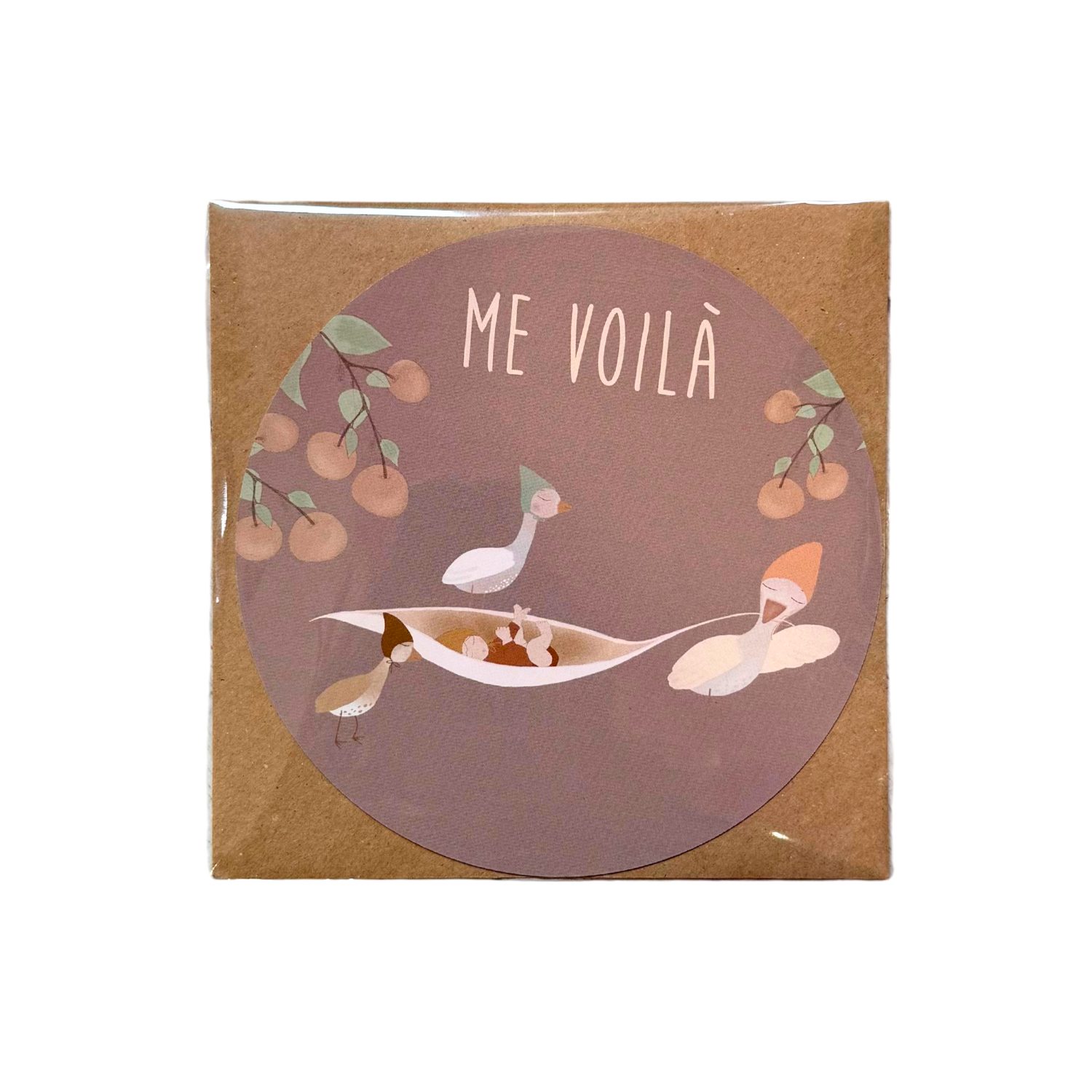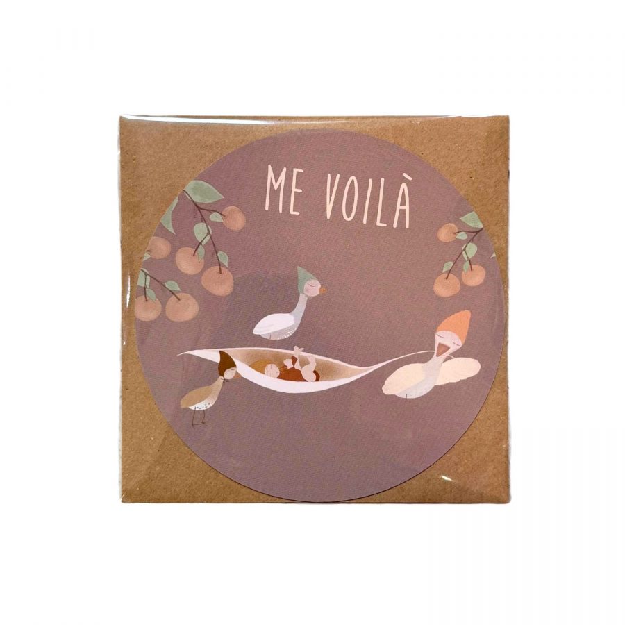 Avec son format rond original et son papier épais de qualité, cette carte « Me voilà » est parfaite pour annoncer une naissance ou accompagner un cadeau. Livrée avec son enveloppe et sa pochette transparente, elle est prête à offrir ou à garder en souvenir précieux. Un petit mot plein d’émotion à partager avec vos proches.