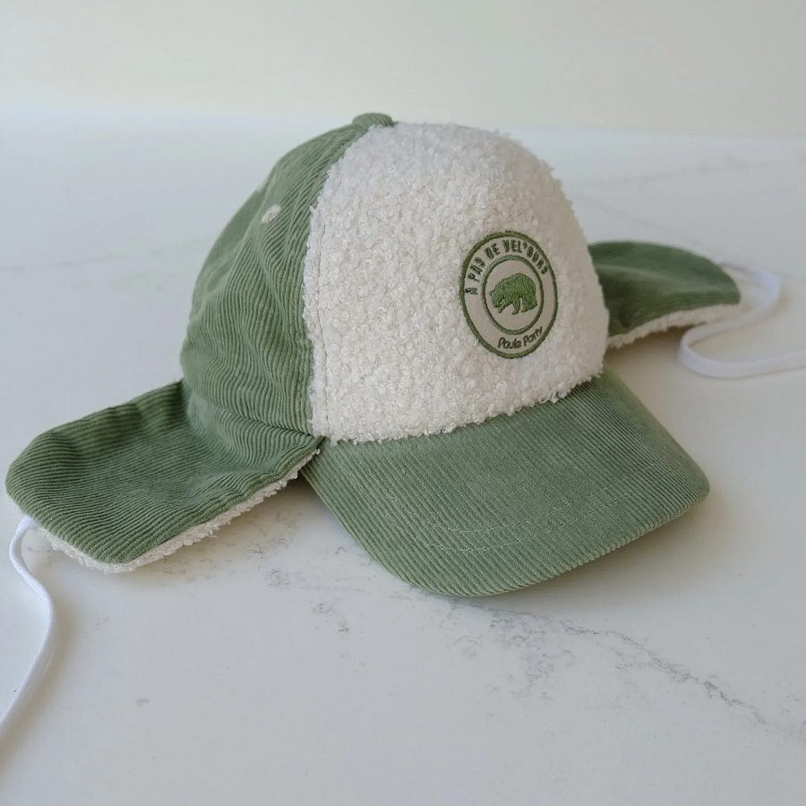Casquette velours avec cache-oreilles – verte (18 mois à 4-5 ans)