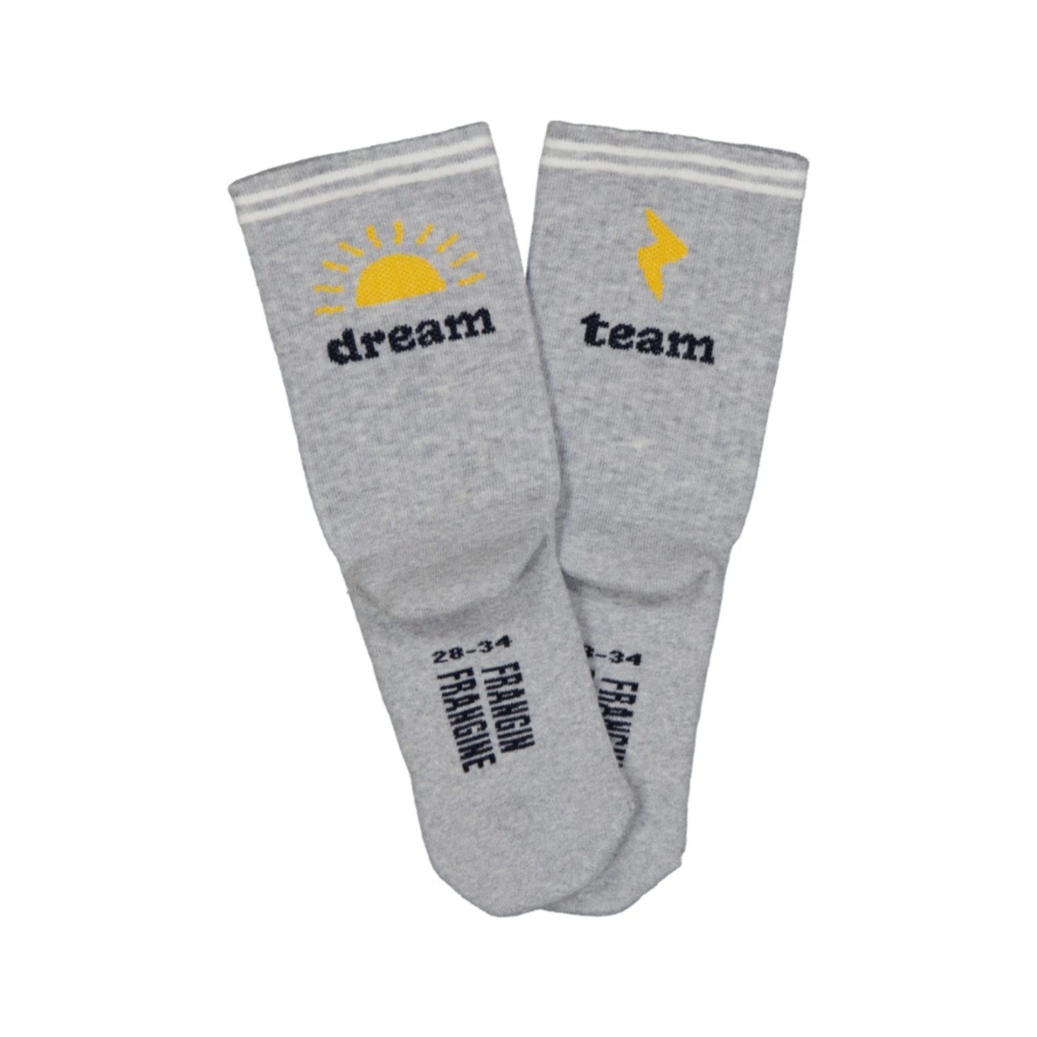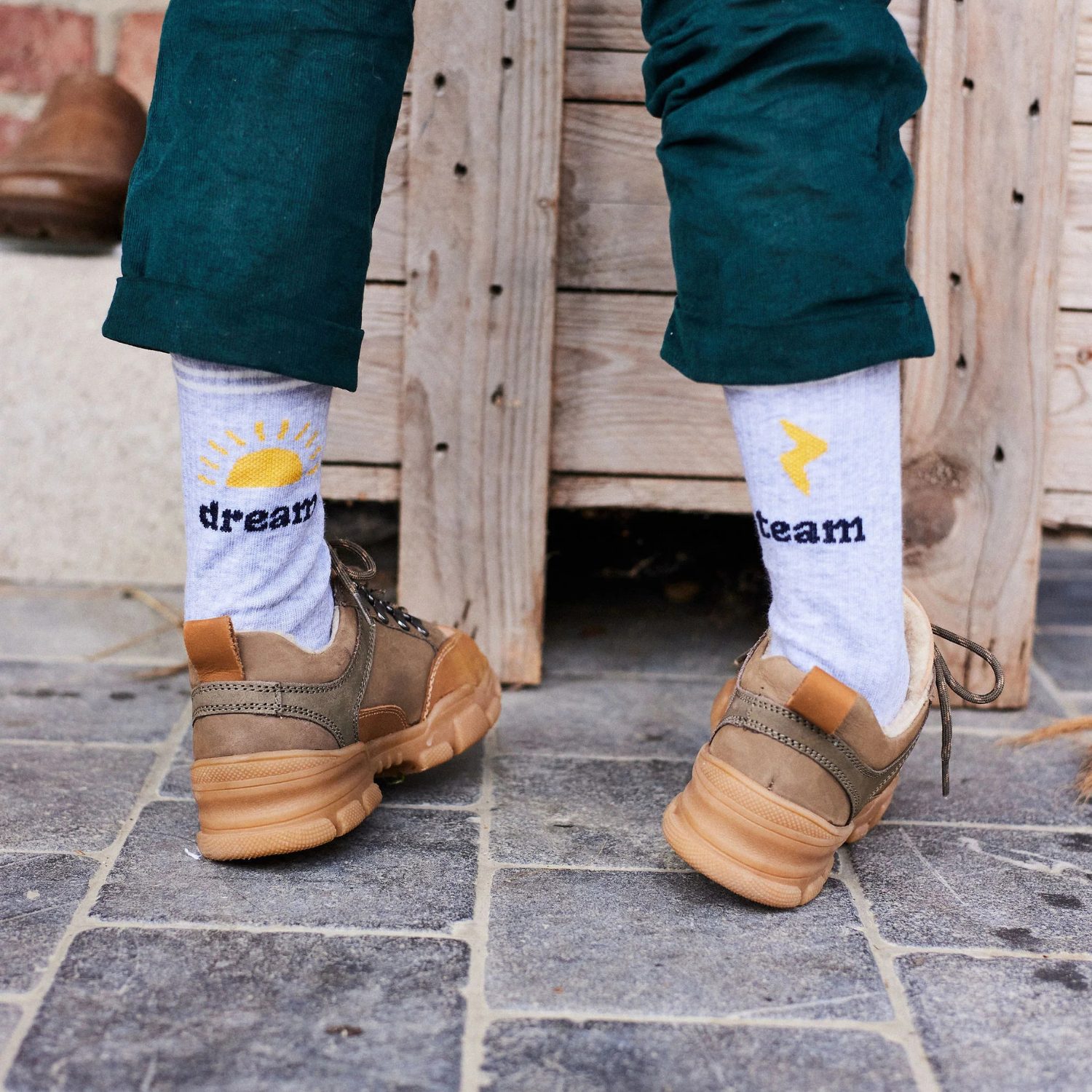 On dit oui au look sporty et stylé avec Georgette la chaussette parfaite ! Cette version grise du modèle Dream Teamgarde ses rayures sporty et son message positif, pour donner un max d’énergie et de bonne humeur aux petits comme aux grands.