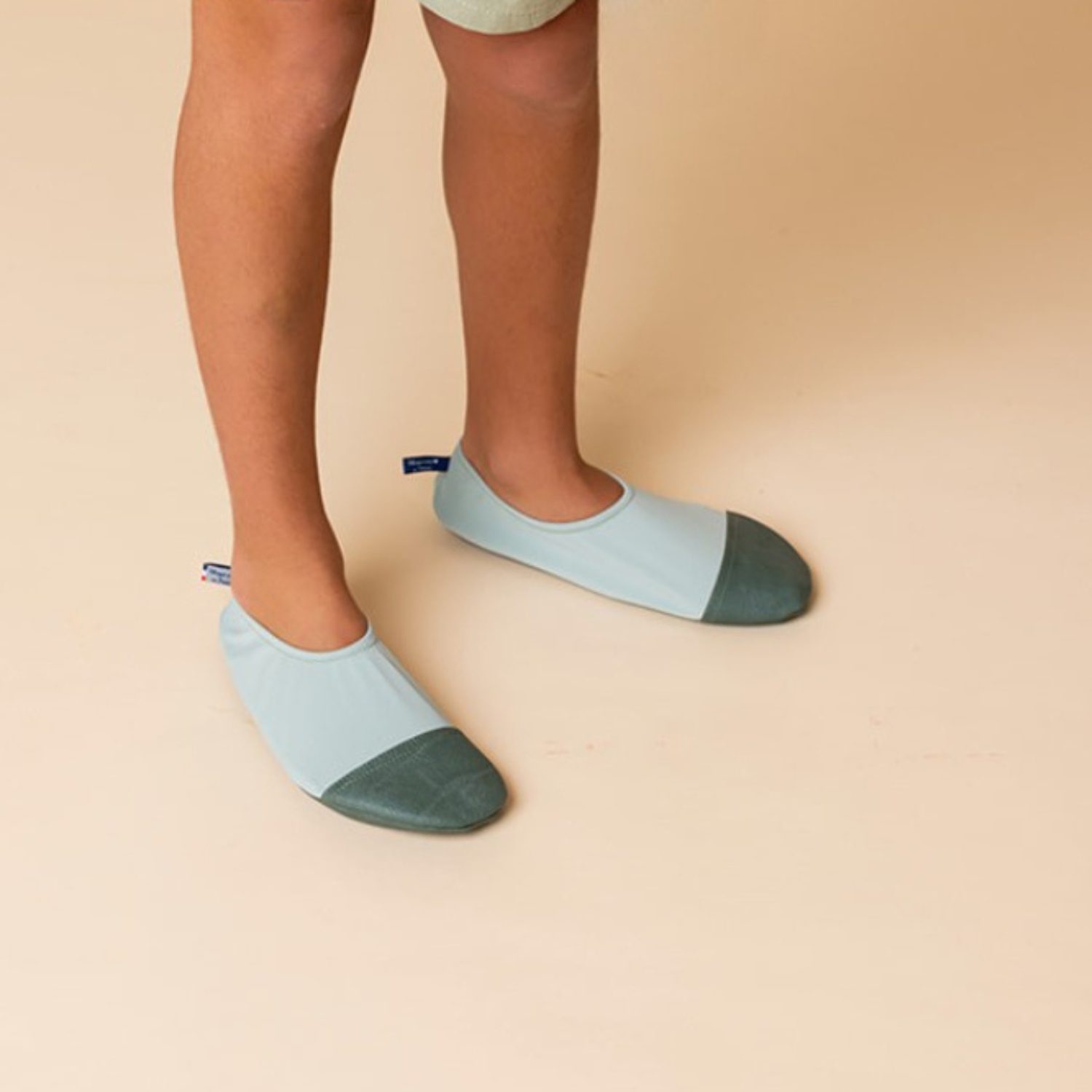 - Semelle fine en PVC et coton, sans phtalates, avec renforts aux bouts des pieds