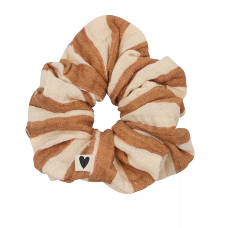 Craquez pour ce chouchou en gaze de coton à rayures, doux, léger et plein de charme. Son tissu aérien et ses motifs délicats en font un accessoire parfait pour rehausser une queue de cheval, un chignon ou simplement habiller le poignet.