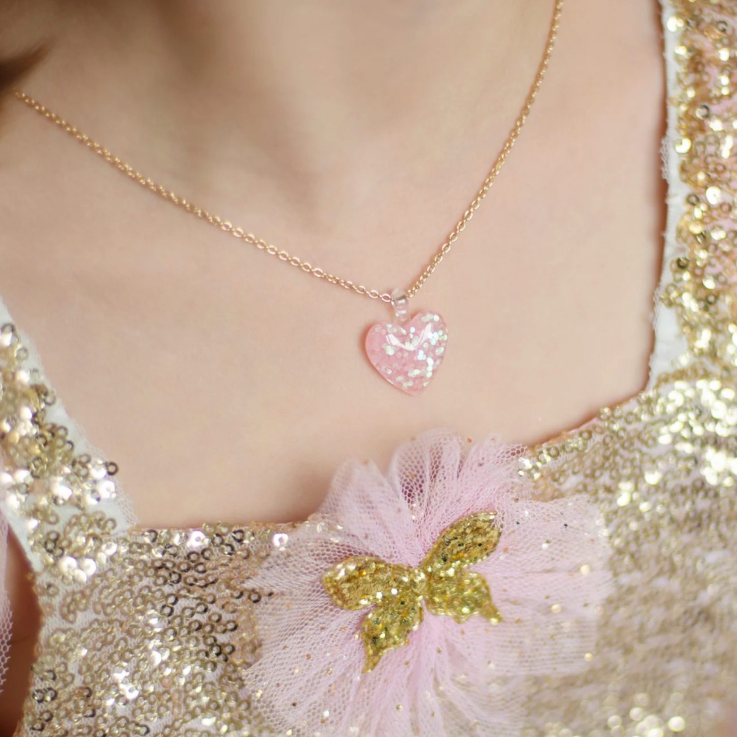 Ce collier cœur pailleté rose est un joli petit bijou qui apporte une touche douce et brillante aux tenues des enfants. Léger et agréable à porter, il se glisse facilement autour du cou pour accompagner le quotidien, les anniversaires ou les moments un peu spéciaux. Son cœur scintillant plaît tout de suite et complète aussi bien une tenue simple qu’un look plus festif. Un accessoire facile à porter, à aimer et à offrir.