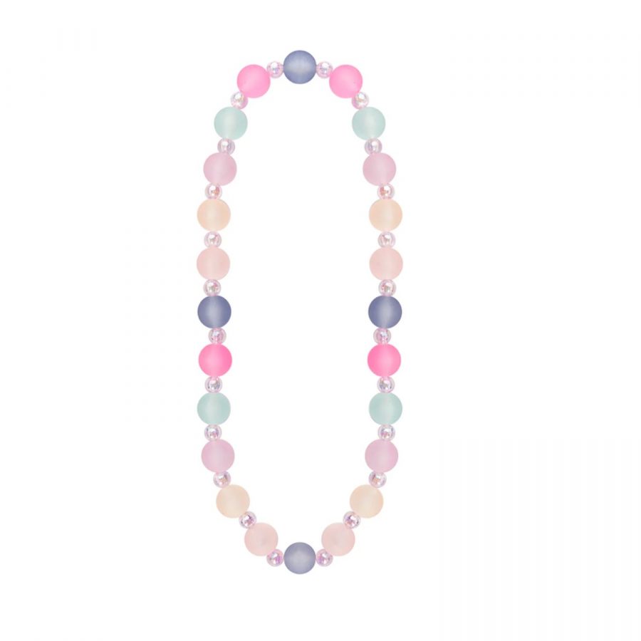 Ce collier en perles texturées givrées est une merveille pour les enfants qui aiment les accessoires colorés et ludiques. Il se compose de perles aux tons pastel bleu, rose et violet alternées avec de petites perles transparentes, pour un rendu doux et scintillant.