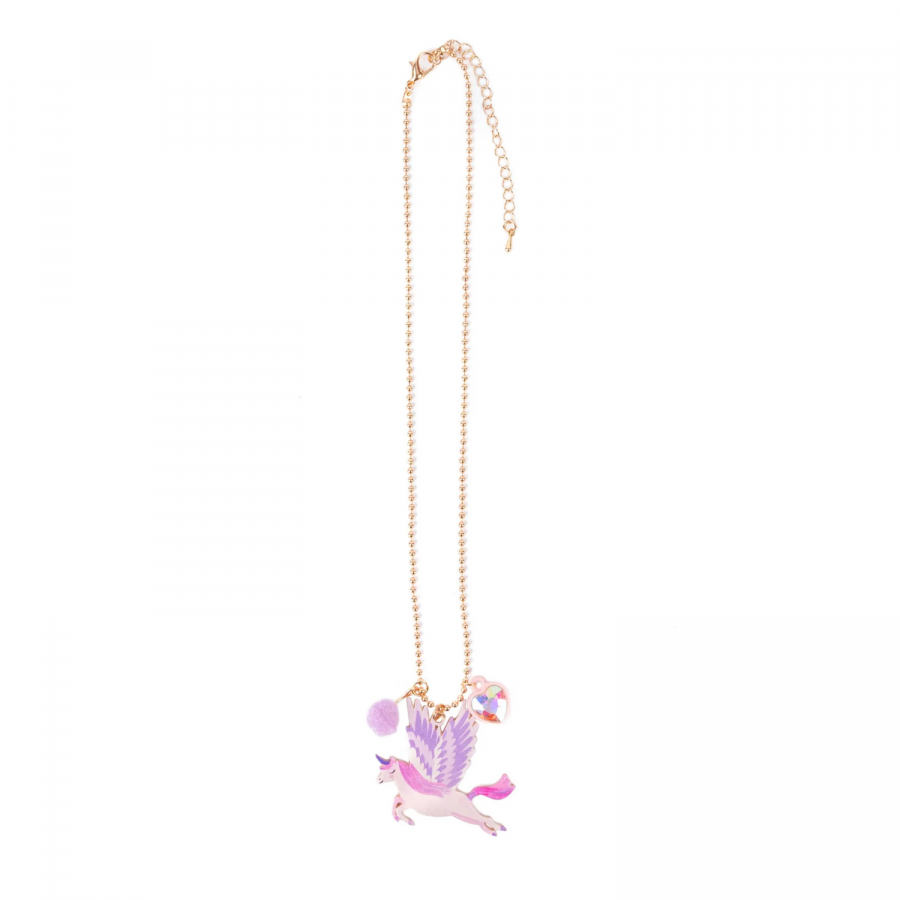 Un bijou enchanté à déposer autour du cou, où la poésie prend forme dans une petite licorne ailée aux nuances de violet et rose. Ce collier délicat danse à chaque mouvement, accompagné d’un pompon duveteux et d’un cœur gemme scintillant, pour faire briller l’imaginaire à chaque sourire. Léger et joyeux, il invite à rêver et à célébrer la fantaisie dans le quotidien.