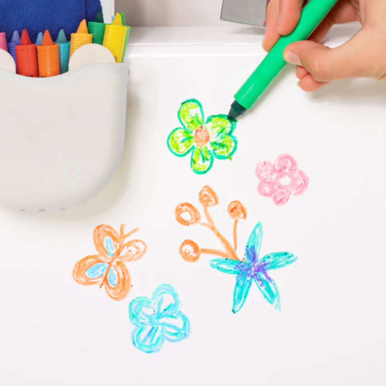 Des crayons spécialement conçus pour transformer le moment du bain en un vrai terrain de jeu créatif. Ce set coloré invite les enfants à dessiner, écrire ou inventer des histoires directement sur les carreaux et la baignoire en toute simplicité. Ils glissent bien sur les surfaces humides et s’effacent facilement pour laisser place à un nouveau chef‑d’œuvre à chaque bain.