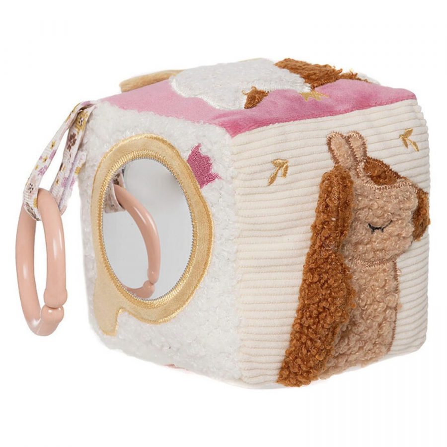 Ce cube d’activités tout doux stimule les sens et la motricité fine grâce à ses différentes textures, étiquettes et éléments à manipuler. Chaque face réserve une nouvelle surprise : matières à toucher, petits bruits et détails colorés à observer.