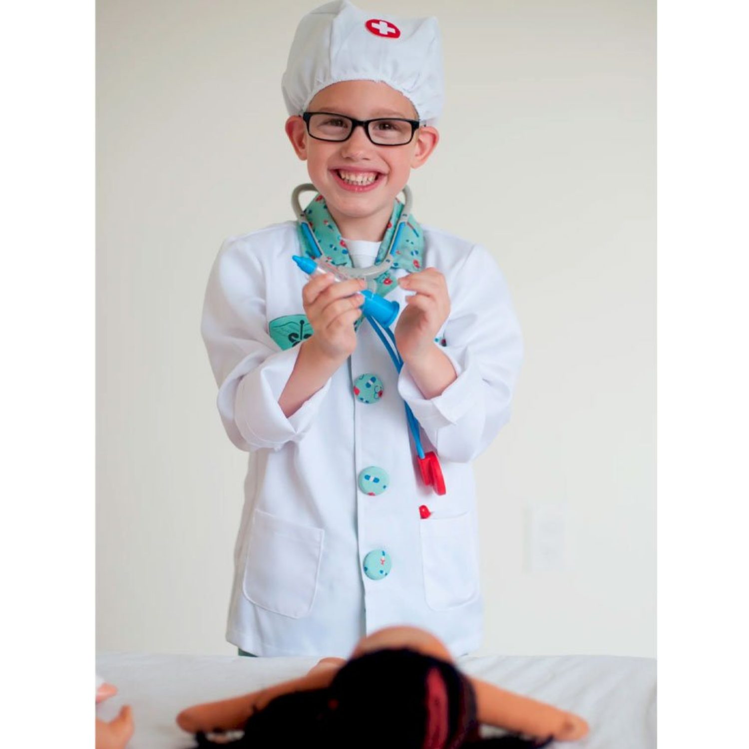 Avec ce costume de docteur, les petits prennent soin de leurs peluches, poupées et même de toute la famille. Complet et facile à enfiler, il permet d’imaginer mille histoires tout en découvrant le monde des grands.
