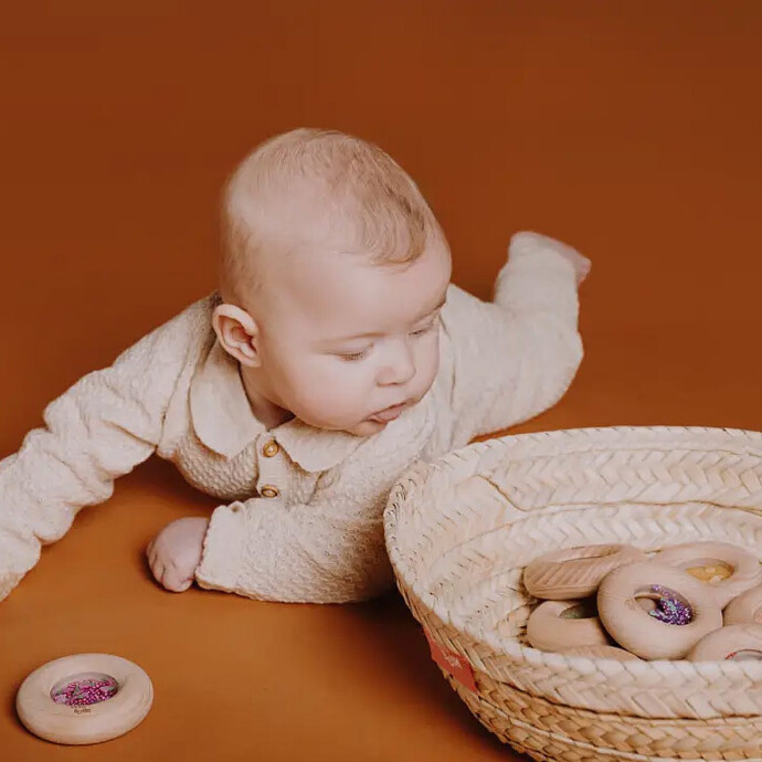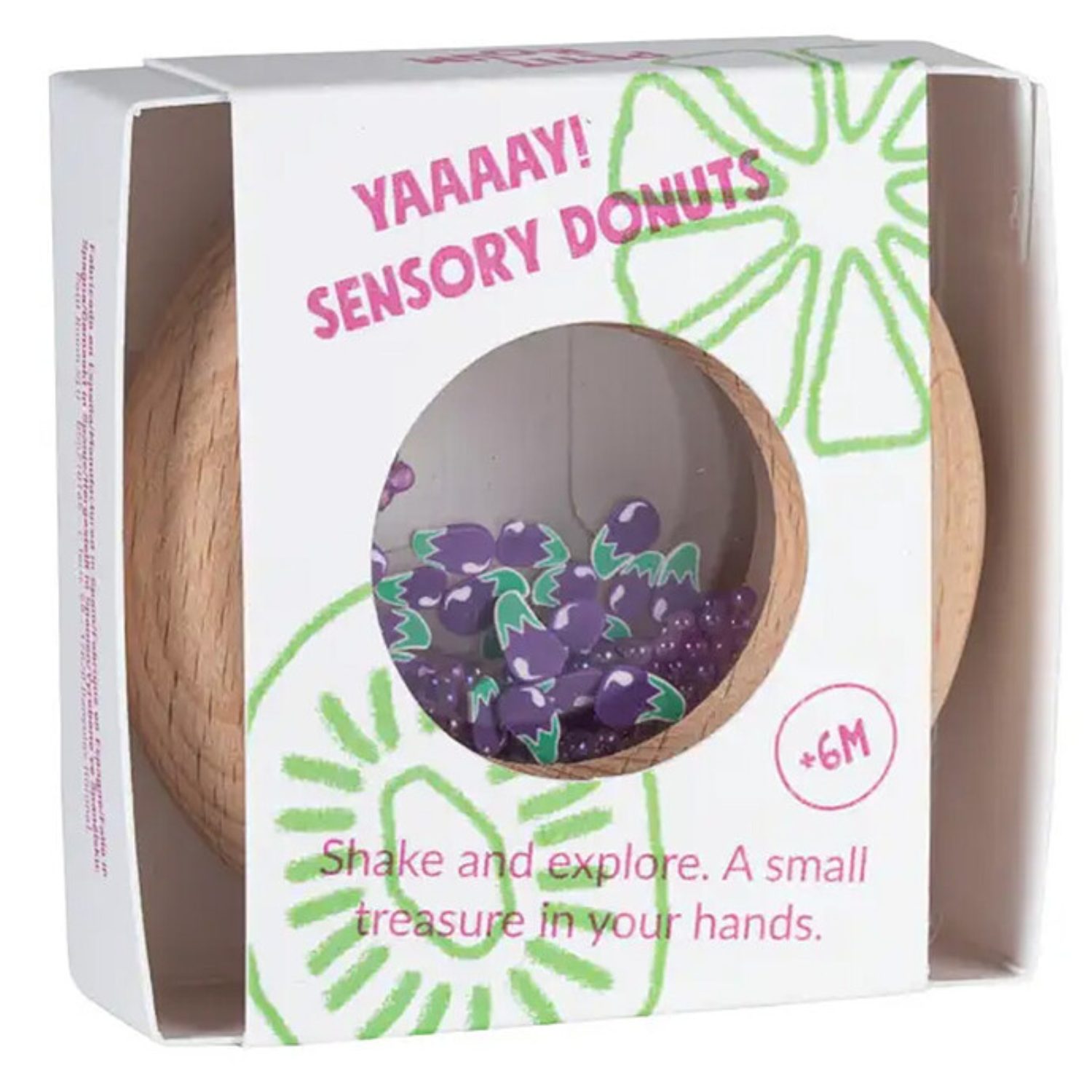 Un beignet à croquer… mais version jouet ! Ce donut sensoriel tout mignon en bois de hêtre est parfait pour les petites mains (et les petites dents). Avec ses billes colorées et ses mini citrons à l’intérieur, il attire l’œil, stimule les sens et amuse bébé dès 6 mois. Il fait un petit bruit rigolo quand on le secoue, et sa forme arrondie est idéale à attraper, secouer, mordiller ou observer. Ludique, sain, naturel : un jouet sensoriel au top pour éveiller bébé en douceur.