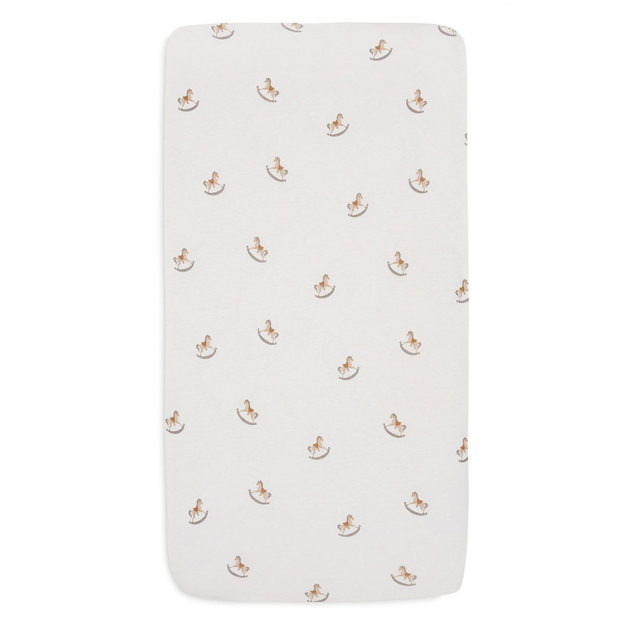 Adoptez douceur et style avec ce drap-housse en jersey à l’imprimé « Nostalgic Ride » : des adorables chevaux gambadant sur un fond doux. Extensible et confortable, il s’adapte parfaitement à l’effet déformant d’un matelas dès les premiers jours. Les bords élastiques assurent un maintien parfait, même lorsque bébé gigote pour se rassurer ; il complète à merveille la literie de la même collection.