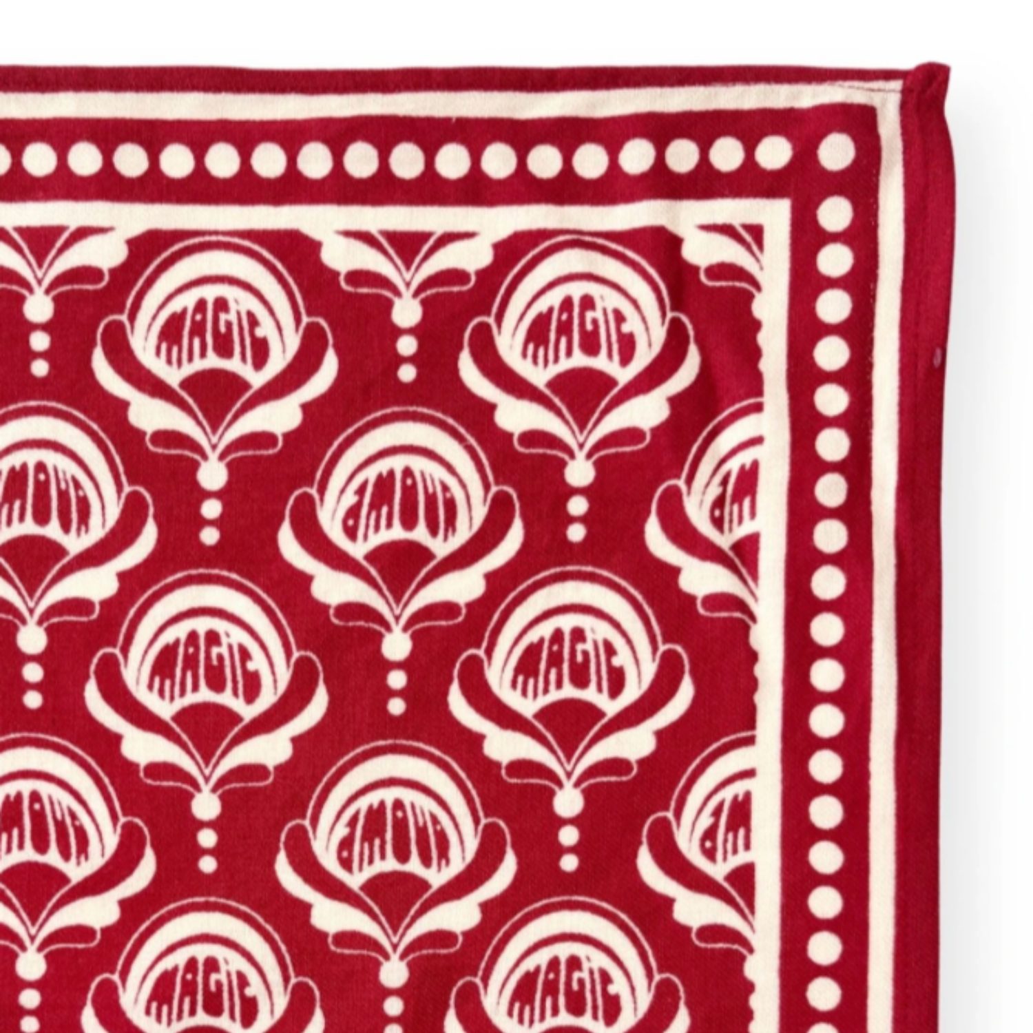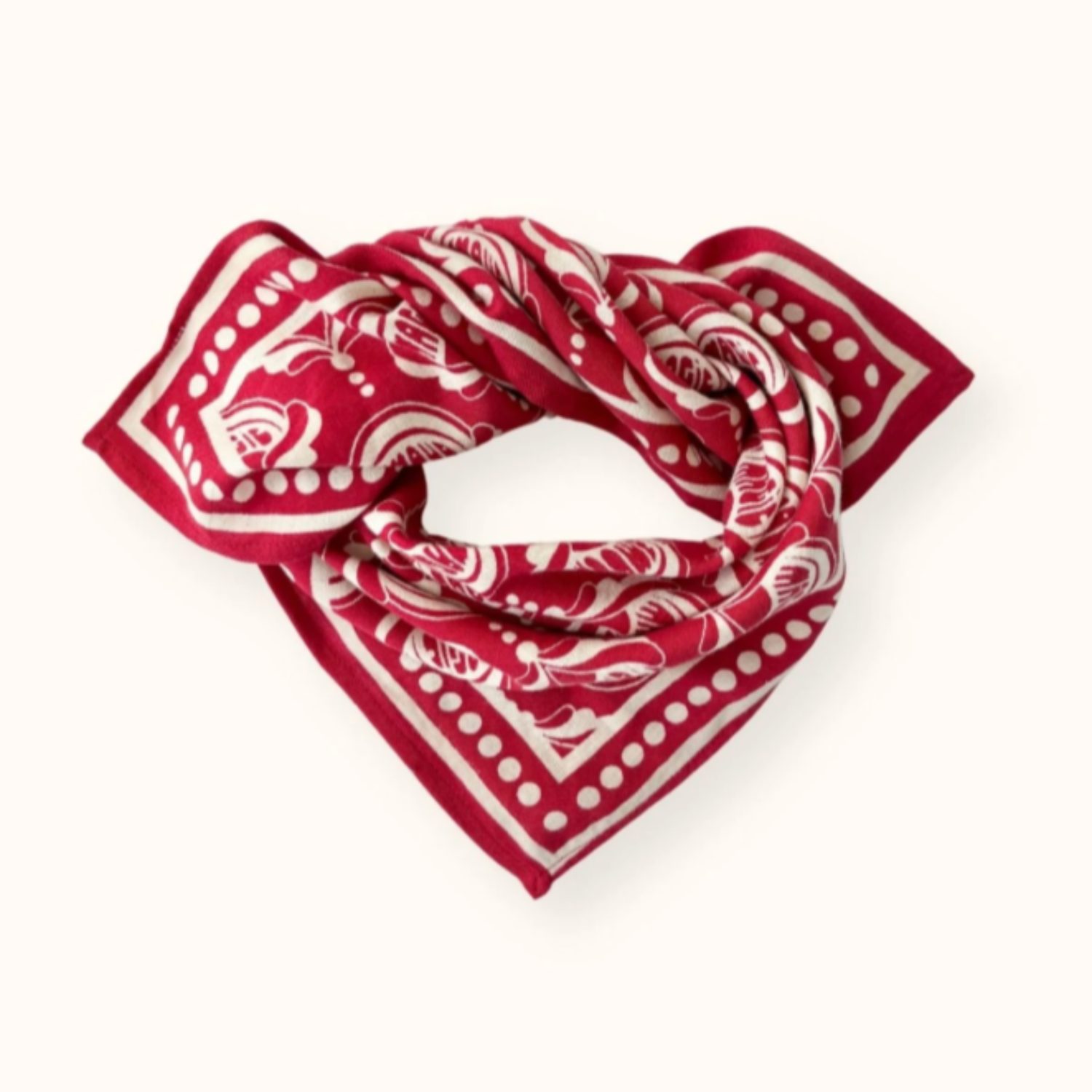 Son imprimé graphique audacieux et ses nuances chaudes illuminent instantanément le look, qu’il soit porté autour du cou, dans les cheveux ou noué au poignet. Léger et doux, ce carré en coton accompagne petits et grands au quotidien.