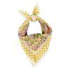 Le grand foulard Pivoine jaune séduit par son éclat et son raffinement. Sur un fond beige clair, on retrouve un bord en damier jaune, de délicates pivoines roses et de fines rayures jaunes au centre pour un rendu harmonieux et lumineux.