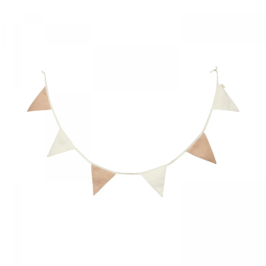 Une touche de fête au quotidien ! Cette jolie guirlande en gaze de coton dans les tons Biscuit & Ivoire est parfaite pour décorer une chambre d’enfant ou célébrer un anniversaire. Réutilisable et toute douce, elle est composée de 6 fanions au look poétique. À accrocher au mur, à la tête de lit ou au-dessus de la table pour une ambiance joyeuse et chaleureuse.