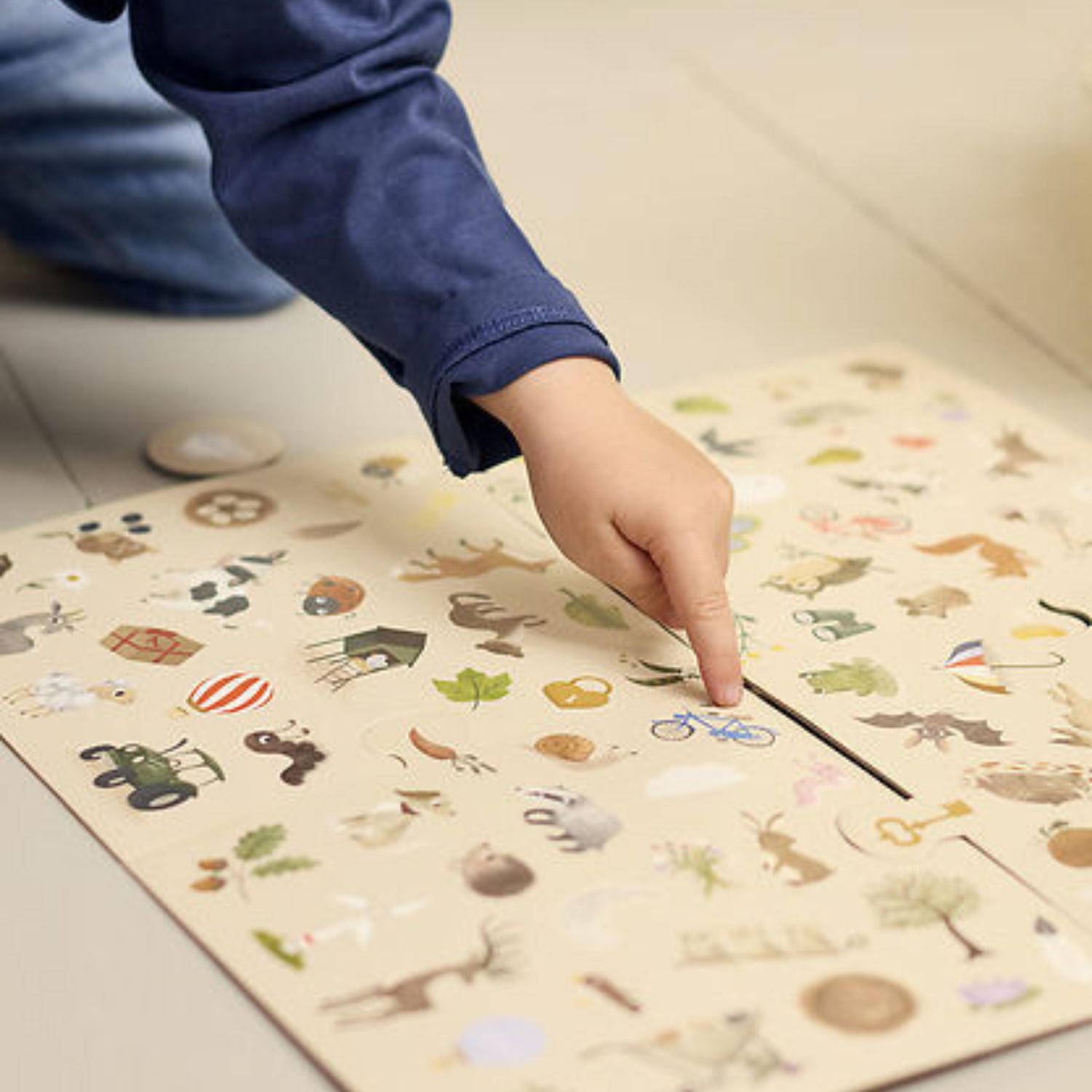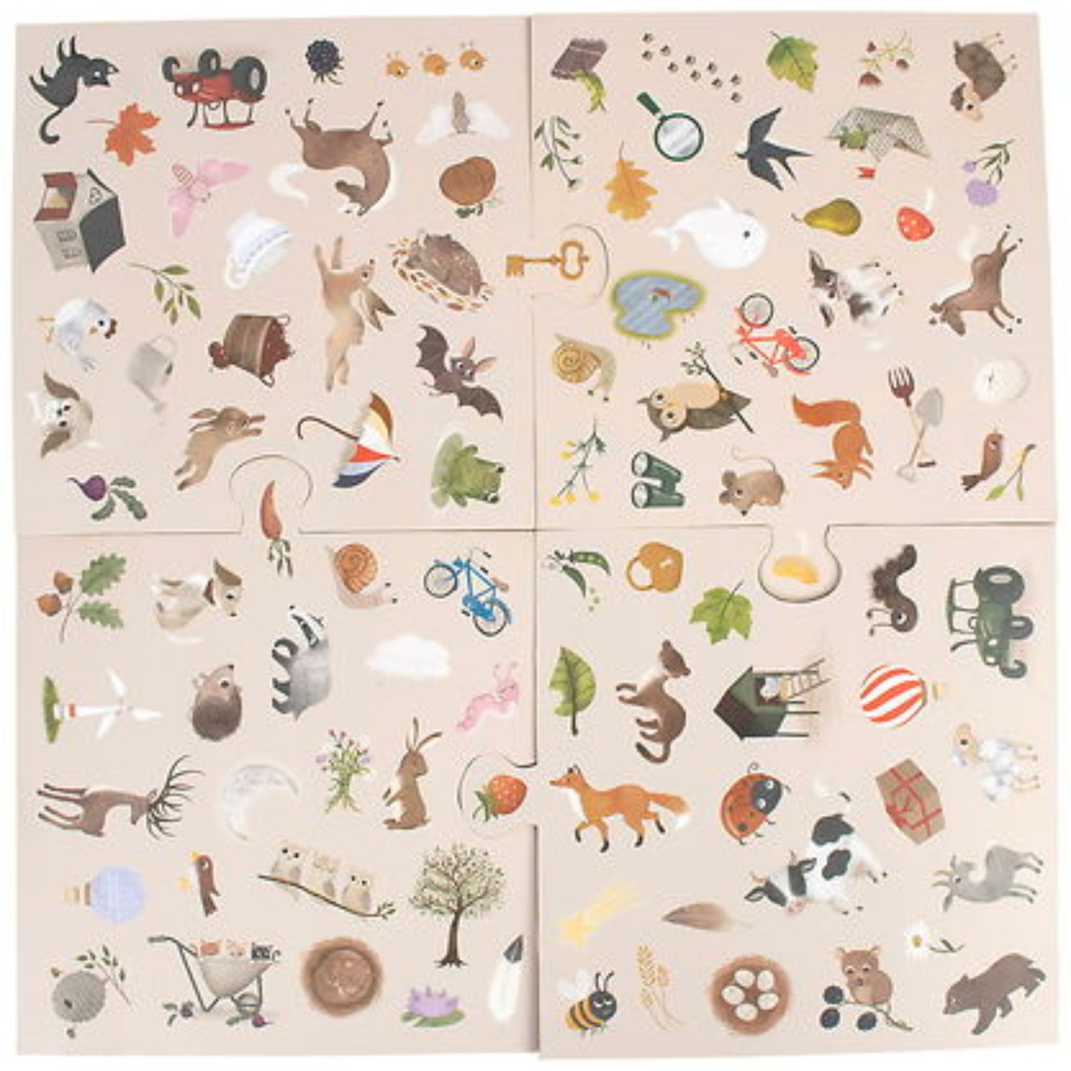 Ce jeu coloré est composé de 100 illustrations pleines de vie représentant des objets, animaux et motifs rigolos.