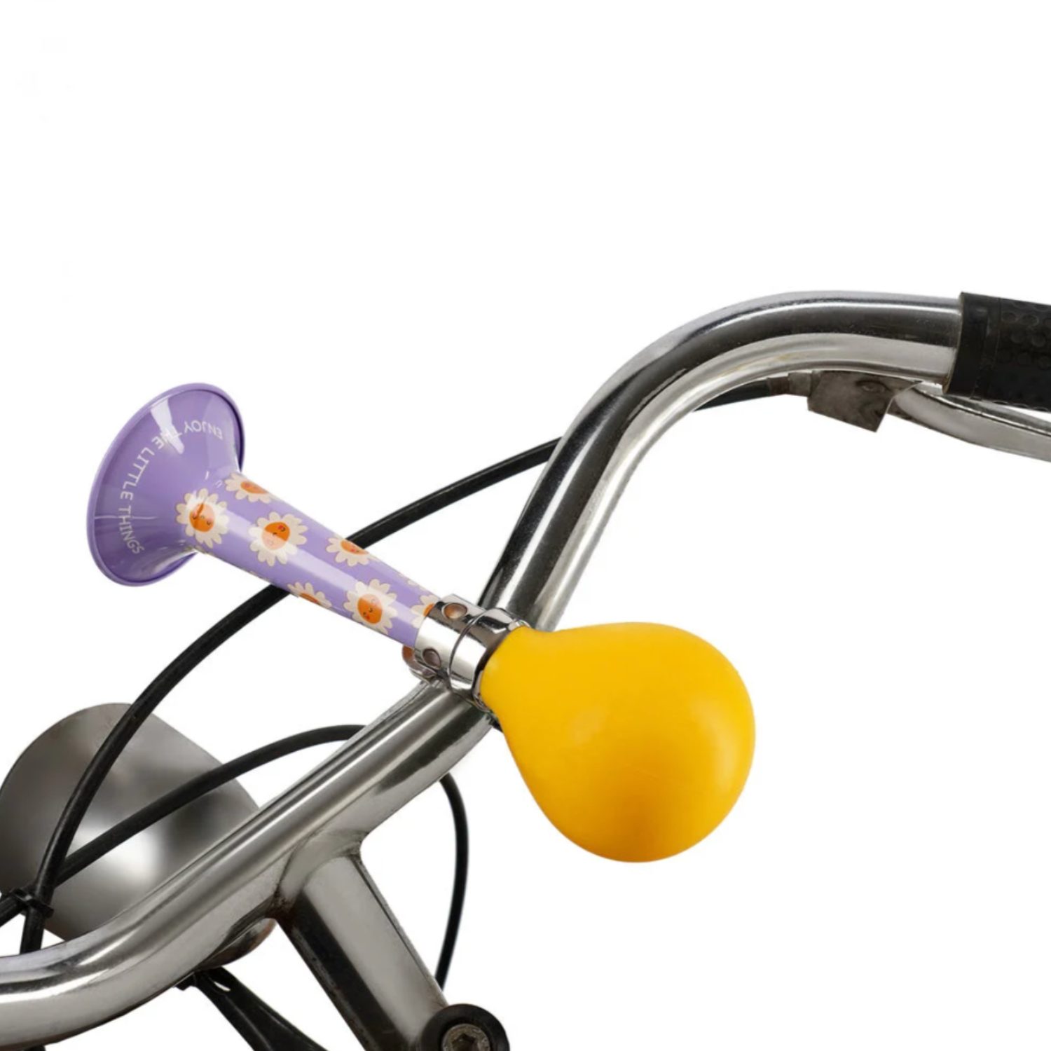 Apportez une touche florale et fun à vos balades avec le Klaxon Trompette pour Vélo sur le thème Marguerites. Facile à installer sur le guidon grâce à son système de fixation par vis, ce klaxon à poire souple combine fonctionnalité et originalité.