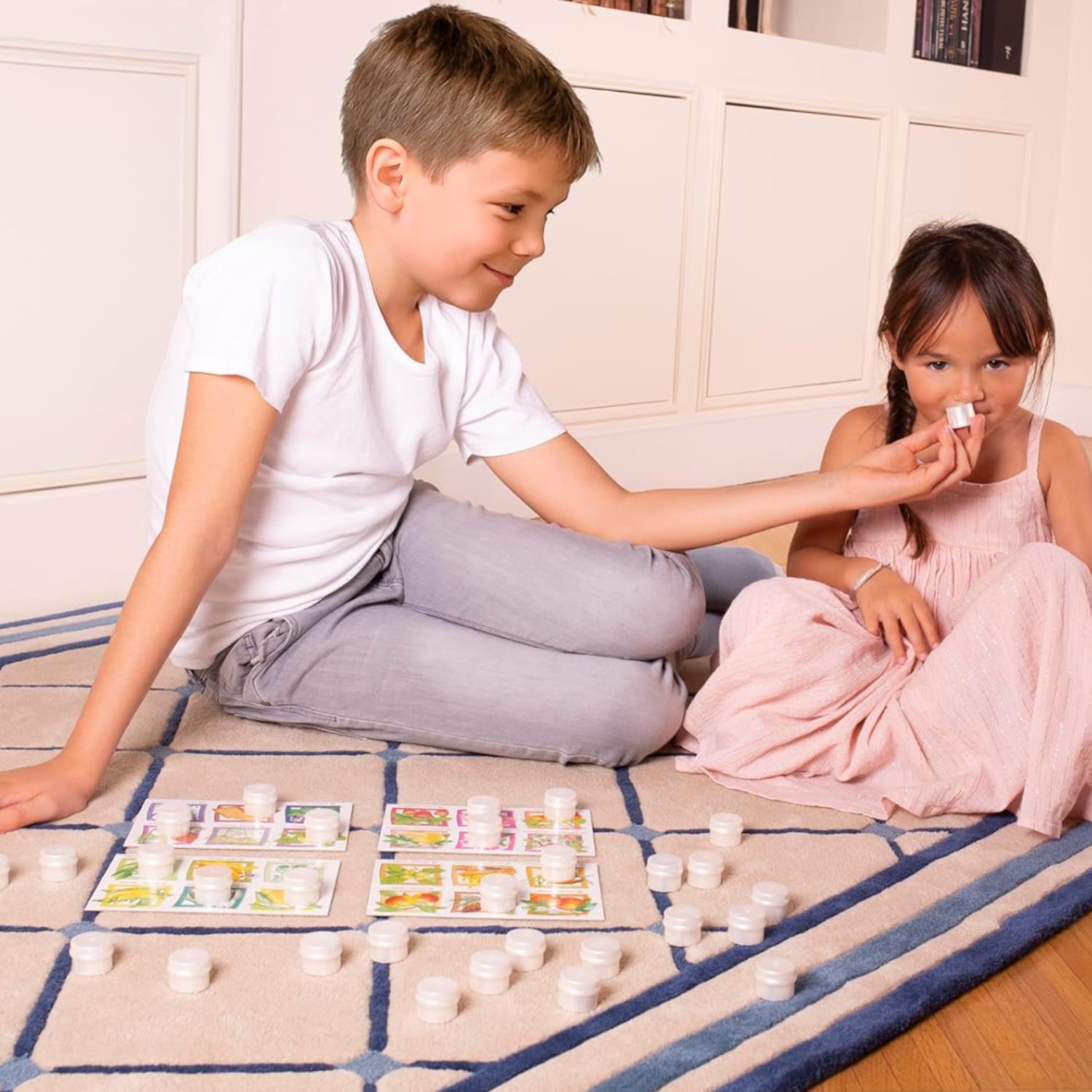 Un jeu sensoriel original pour petits nez curieux ! Le Loto des Odeurs invite à reconnaître et associer 30 parfums différents grâce à 5 jolies planches illustrées. Parfait dès 4 ans pour éveiller les sens, la mémoire et la curiosité autour d’un moment fun et éducatif.