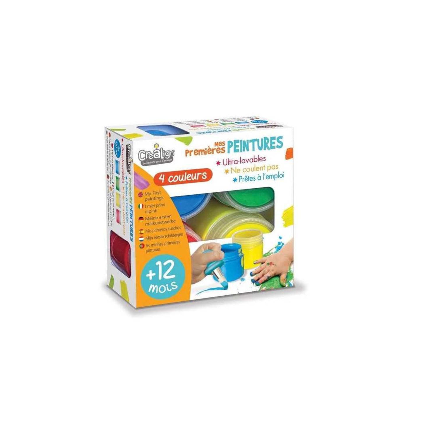 Un coffret de 4 peintures lavables spécialement conçu pour les tout-petits à partir de 12 mois.