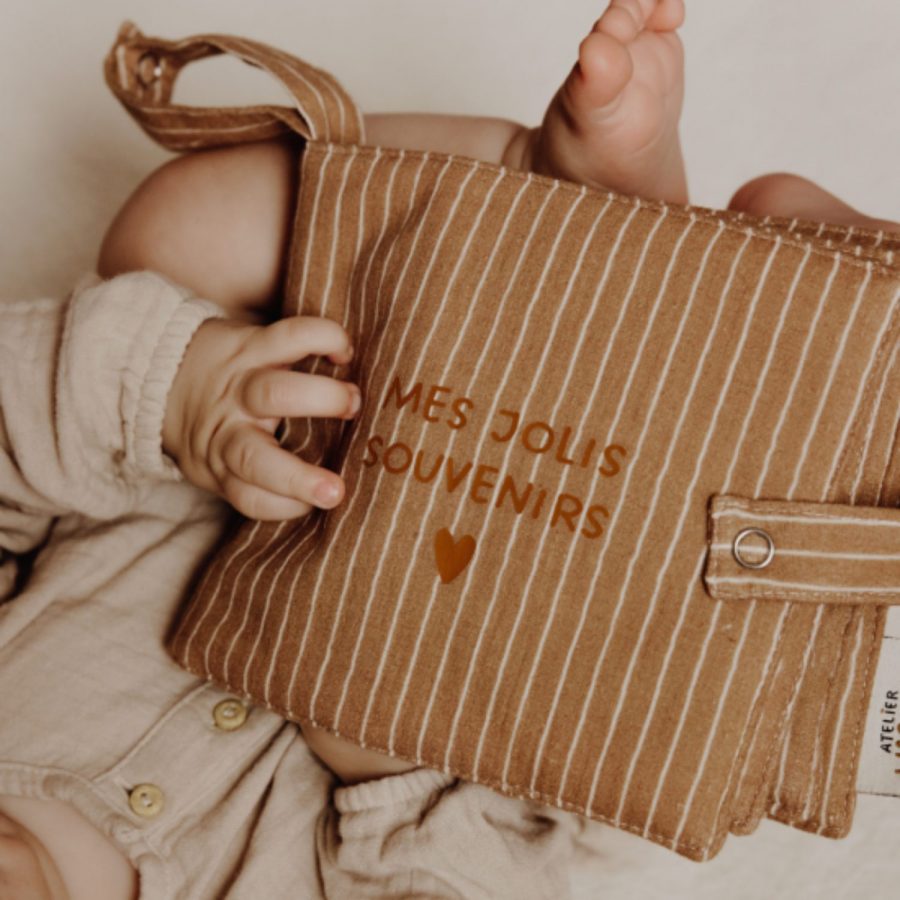 Un adorable mini‑album photo tout doux pour bébé ou enfant, parfait pour immortaliser les premiers sourires et moments complices. Conçu en gaze de coton souple au motif de fines rayures, il tient facilement dans les petites mains et s’intègre avec élégance dans une chambre ou un sac à langer. Un cadeau naissance ou anniversaire plein d’amour.