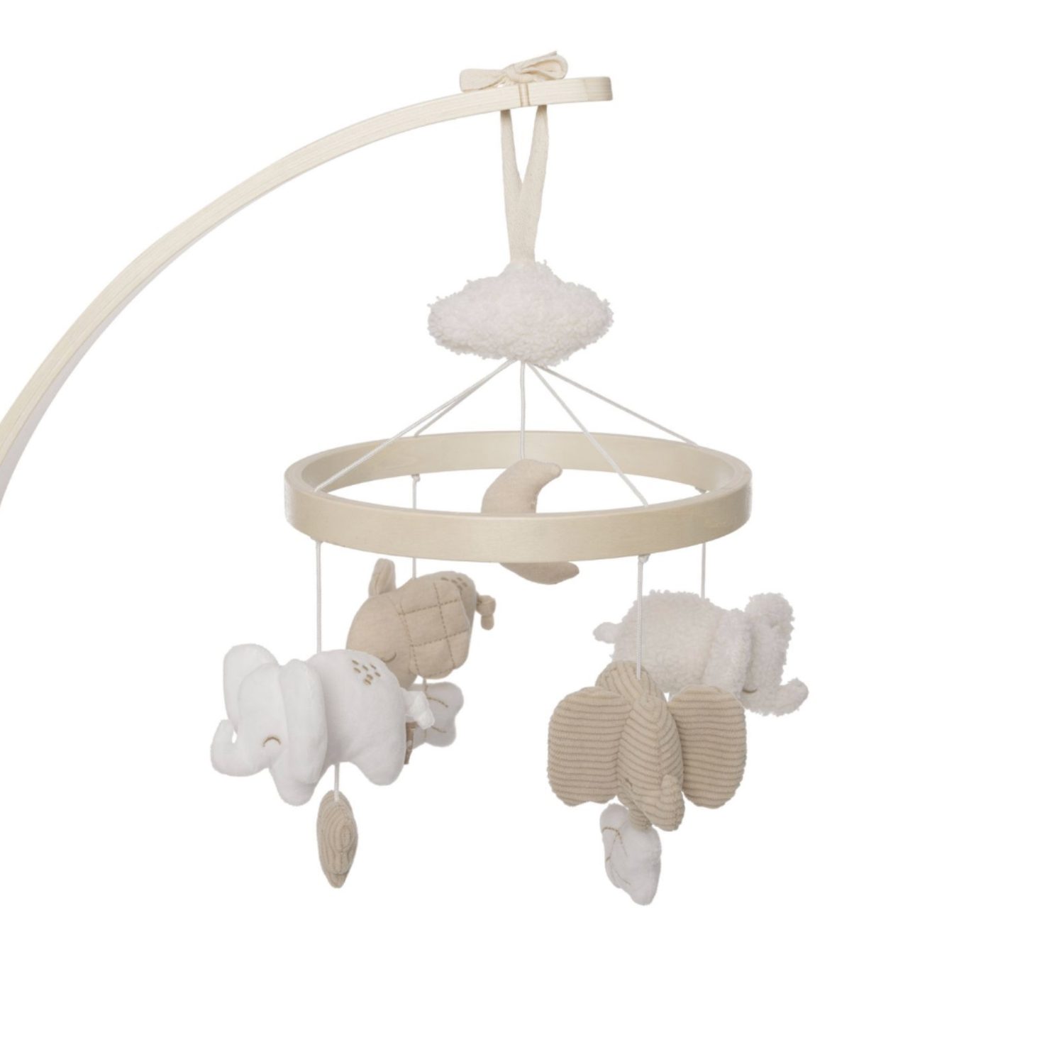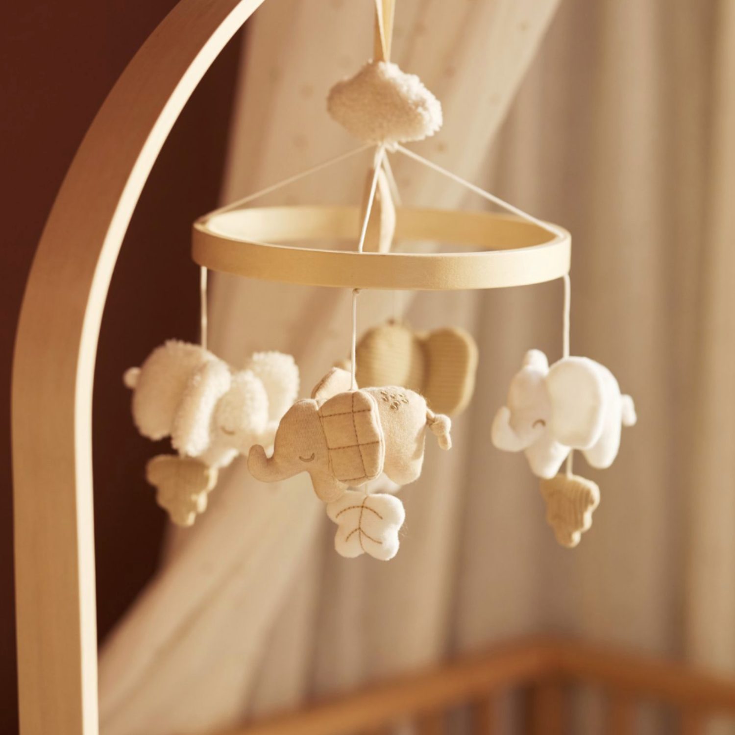 Avec ses petits éléphants suspendus qui dansent doucement au-dessus de lui, ce mobile crée une atmosphère apaisante dans la chambre de bébé. Parfait pour accompagner les moments de repos ou d’endormissement, il capte l’attention tout en douceur et stimule les premiers sens.