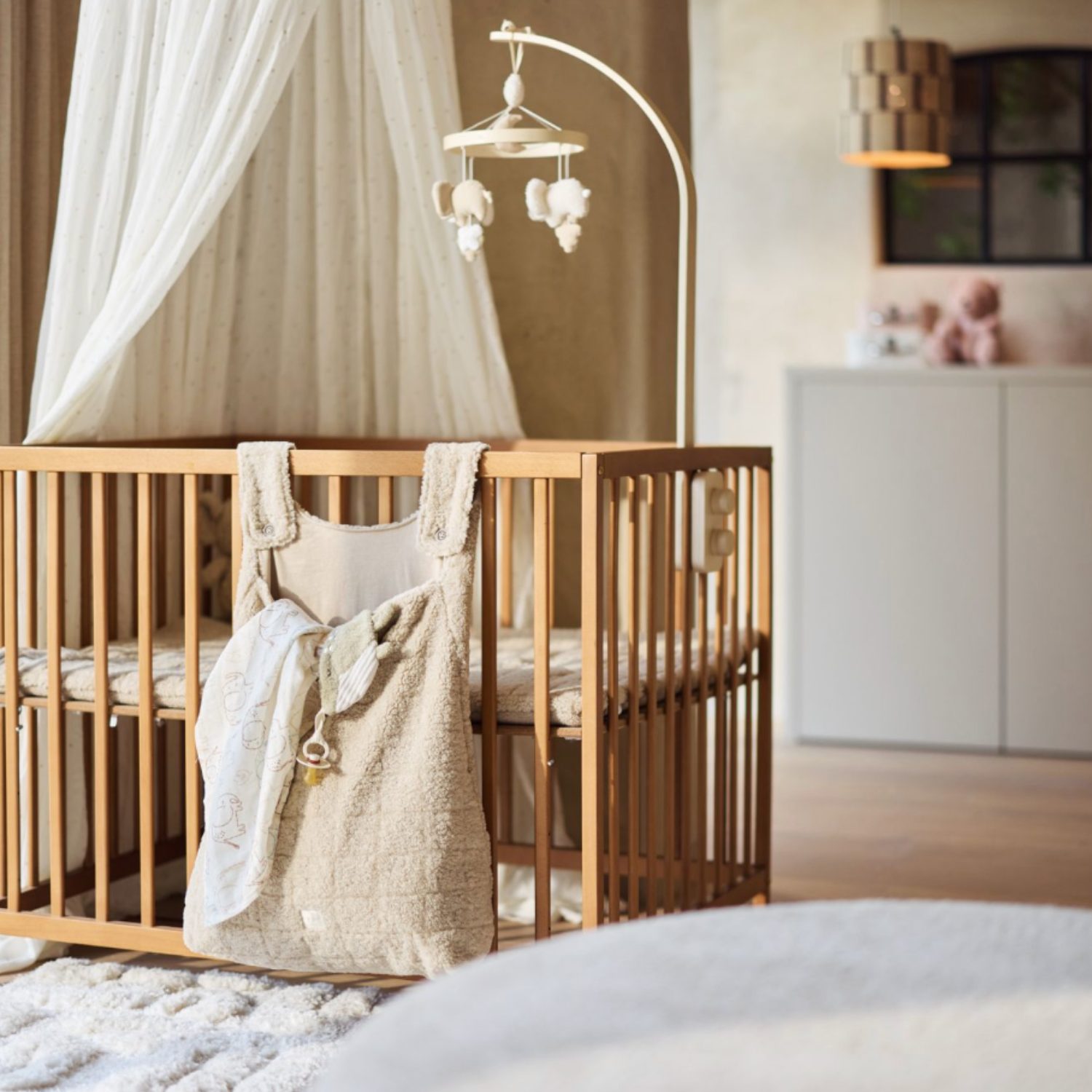 Ses formes tendres et ses mouvements légers invitent à l’éveil visuel, tout en apportant une vraie touche déco à la chambre. À installer au-dessus du lit ou du parc, il devient vite un incontournable du quotidien.