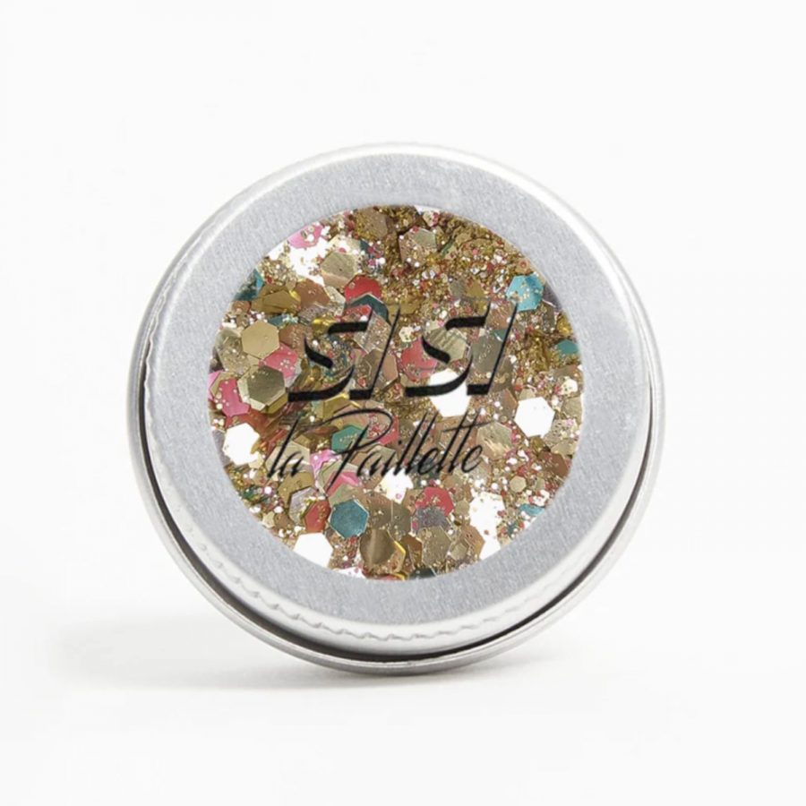 Un mélange festif et raffiné de paillettes biodégradables qui allie glamour, conscience écologique et nuances irrésistibles : des teintes dorées majoritaires, rehaussées de touches de rose et de turquoise pour un effet dynamique et lumineux. Ces paillettes sont parfaites pour le maquillage de soirée, un festival, ou simplement pour ajouter un peu de magie à vos looks créatifs.