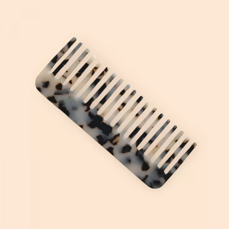 Ce peigne large en nacre écru démêle en douceur tous les types de cheveux, même les plus rebelles.