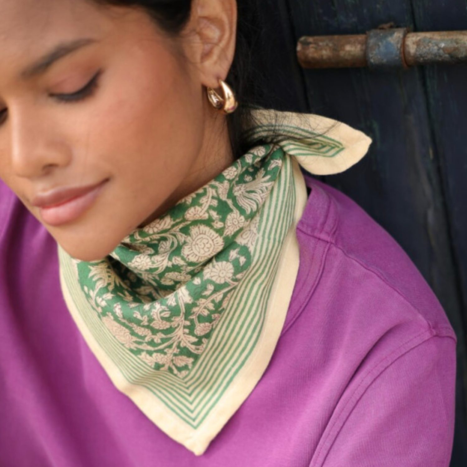 Ce foulard petit format Anjali prairie est l’accessoire idéal pour ajouter une touche bohème et naturelle à vos tenues du quotidien. Léger et doux, il se porte facilement autour du cou, dans les cheveux façon bandana ou noué à un sac pour personnaliser un look.
