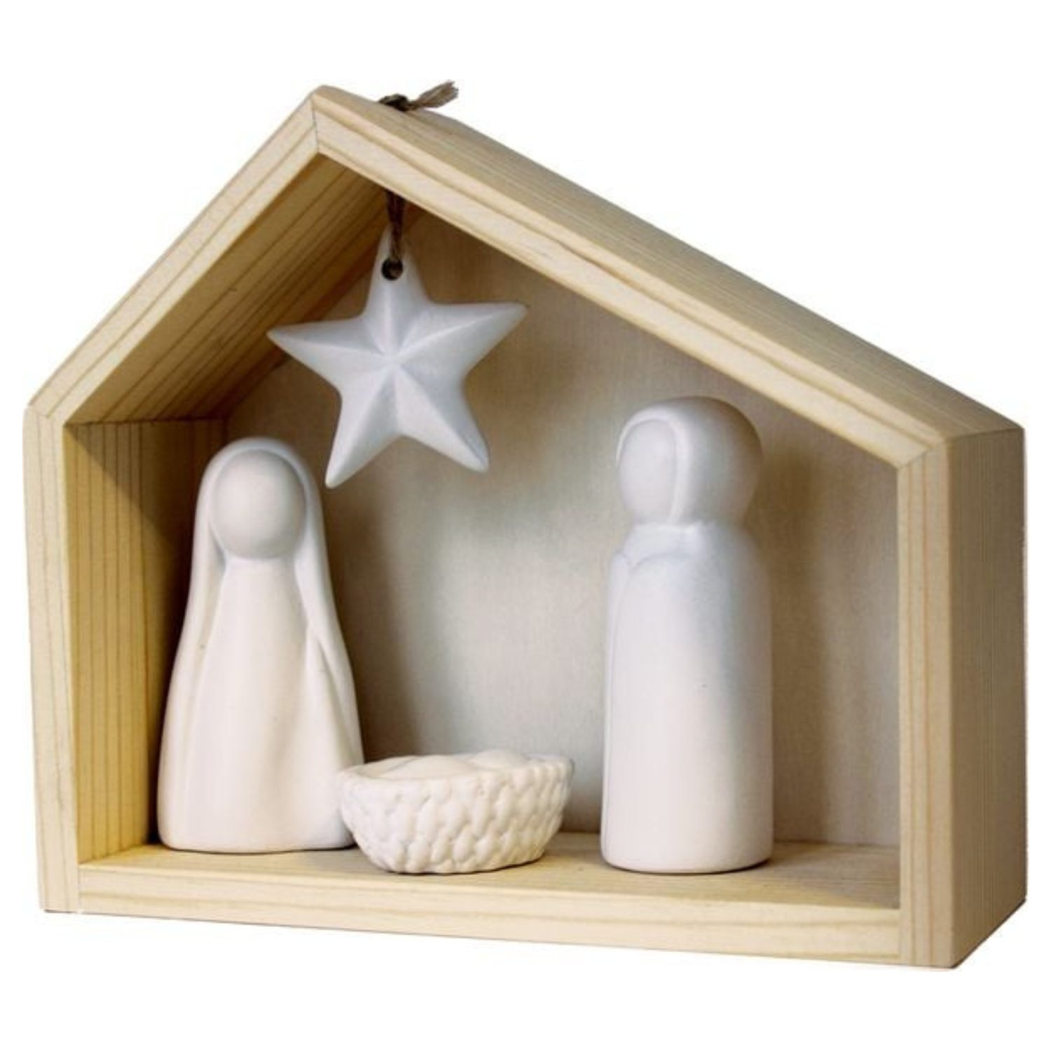 Cette petite crèche de Noël apportera une ambiance douce et chaleureuse à votre décoration. Elle se compose de trois figurines en porcelaine blanche, d’une étoile assortie et d’une maisonnette en bois au design minimaliste. Grâce à son format compact, elle trouve facilement sa place sur une étagère, un meuble, une table ou un rebord de fenêtre.