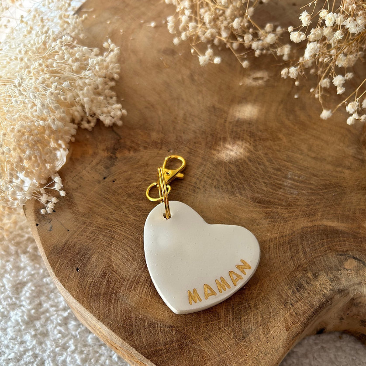 Un petit cœur à emporter partout ! Ce porte-clé en argile recouvert de résine brillante ajoute une touche de douceur à votre trousseau ou à un sac. Chaque lettrage est peint à la main, pour un rendu unique et plein de charme. Fabriqué avec amour dans les Hauts-de-France, ce petit bijou ne demande qu’à vous suivre partout.