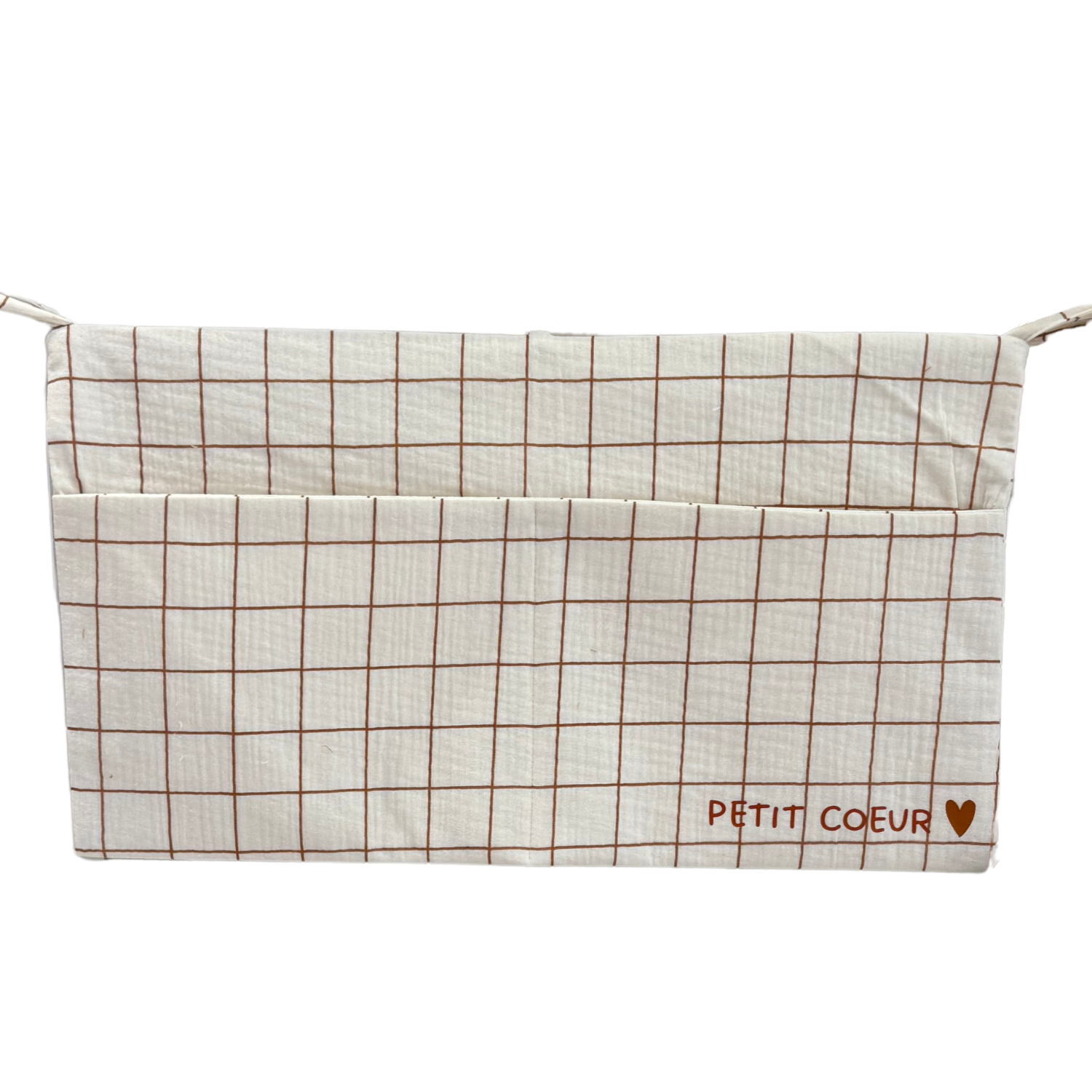 Un accessoire aussi joli que pratique pour mettre fin au bazar dans la chambre de bébé ! Ce range-doudou en gaze de coton offre deux poches pour ranger doudous, tétines ou petits trésors, et se fixe facilement grâce à ses trois liens à nouer. Avec son motif grands carreaux et sa confection soignée au Portugal, il apporte une touche déco douce et naturelle tout en facilitant le quotidien.