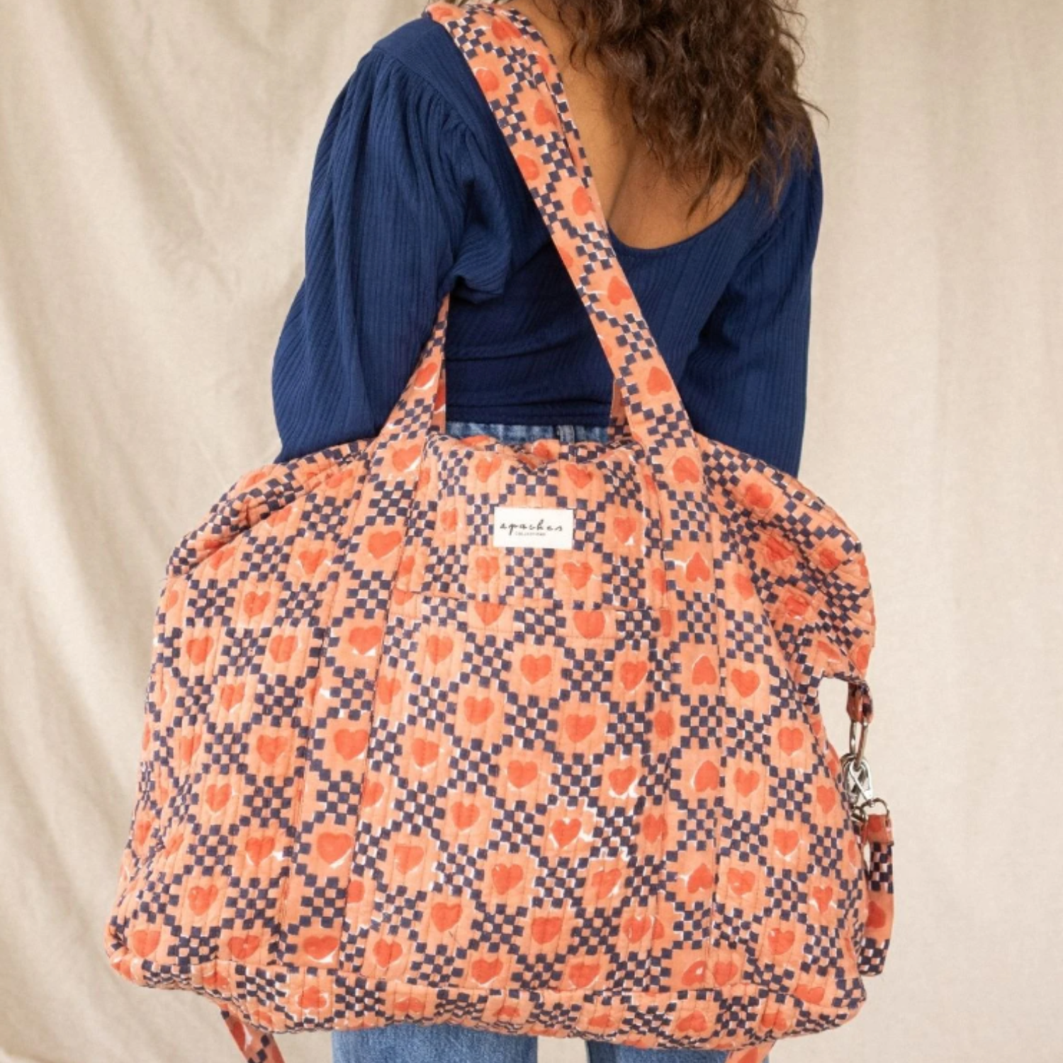 Le sac Thaila, c’est l’allié chic et malin des parents en vadrouille. Avec son tissu matelassé camel, son joli motif cœur et ses poches ultra fonctionnelles, il s’adapte à toutes vos sorties : en ville, à la crèche, en week-end… Son format spacieux et ses anses réglables en font un compagnon aussi stylé que pratique.