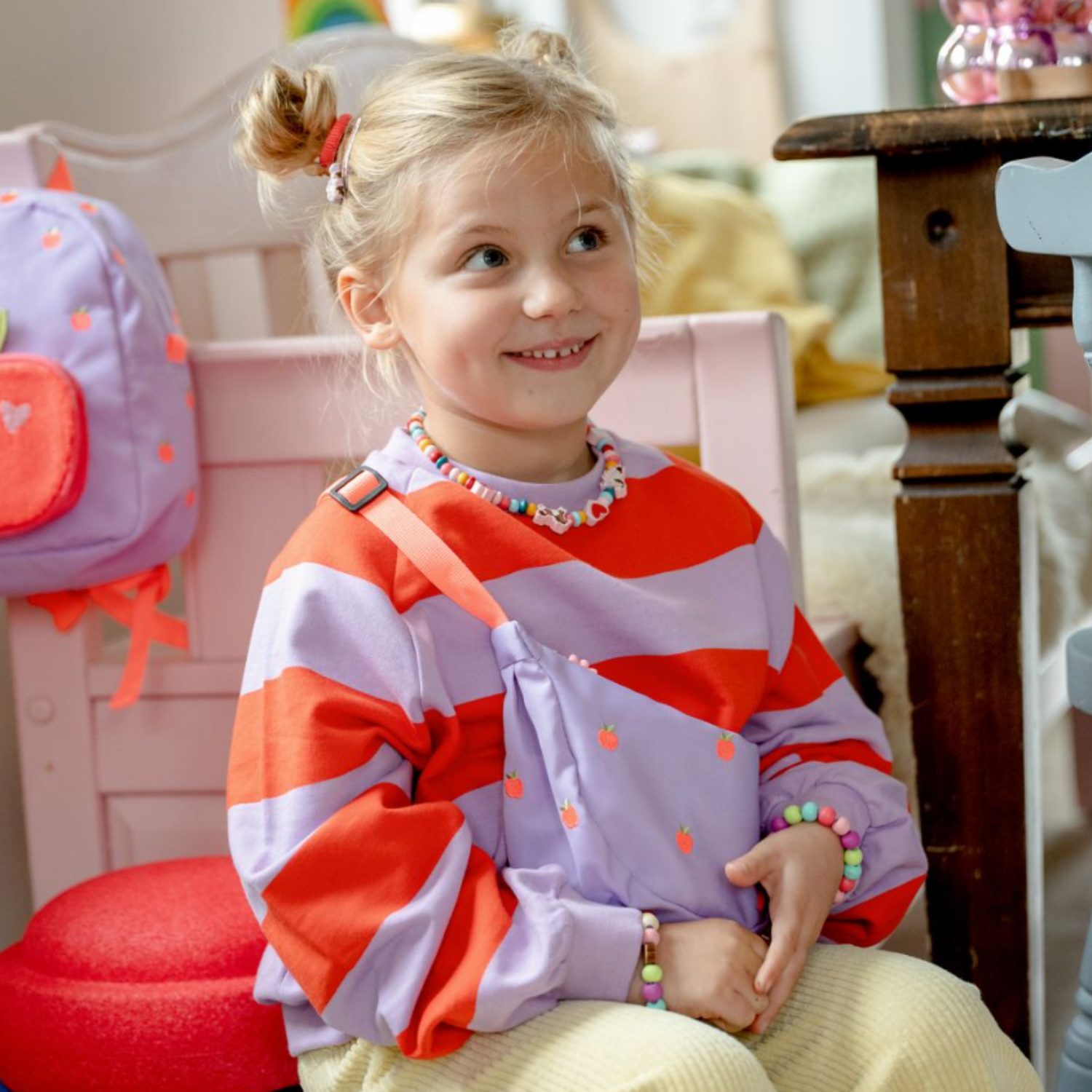 Son design adorable avec motifs pomme et détails ludiques donne une touche de fantaisie à toutes les tenues, tout en restant fonctionnel et facile à vivre au quotidien.