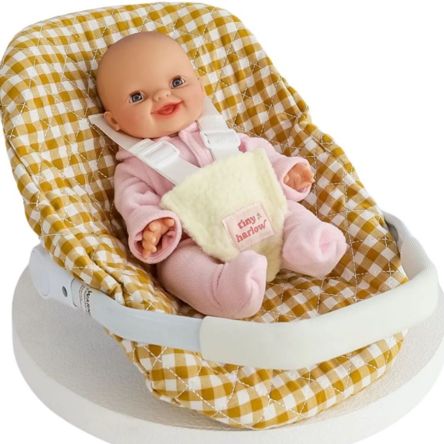 Votre petit bout adore promener sa poupée ? Avec ce siège auto « Vichy moutarde», elle pourra voyager en toute sécurité… version jeu ! Il imite à merveille un vrai cosy : harnais, poignée pour porter ou assise posée au sol. Le motif vichy camel apporte une touche rétro‑chic qui ravira autant les enfants que les parents. Un accessoire d’imitation astucieux pour développer l’imagination, les jeux de rôle et les moments complices.