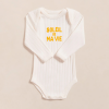 - Coupe & Style : unisexe large, col rond, manches ballon, épaules tombantes, bords-côtes ton sur ton, pressions dans le dos jusqu’à 4 ans pour faciliter l’habillage