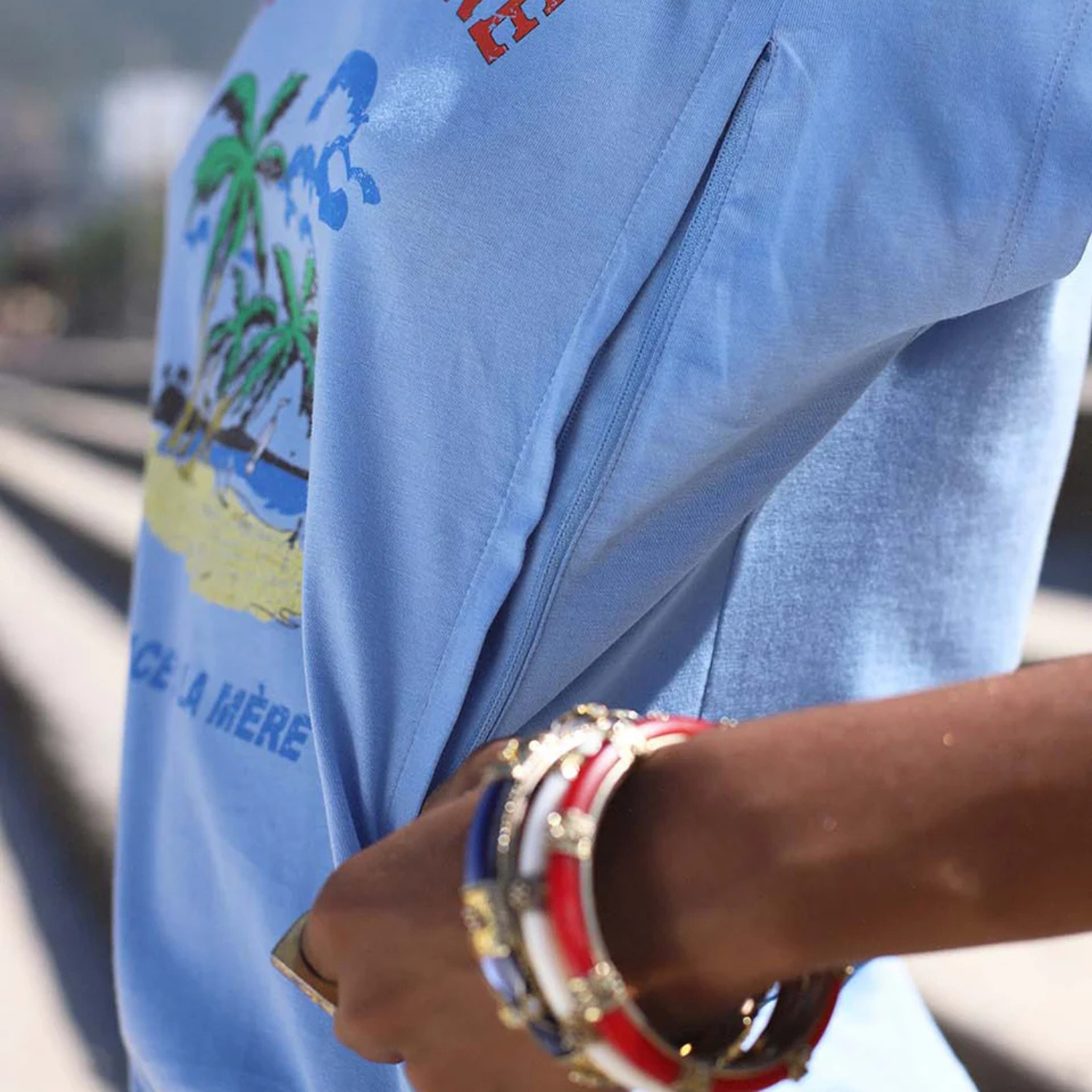 - Fonctionnalité : double ouverture latérale zippée avec bande de discrétion pour allaiter facilement et élégamment
