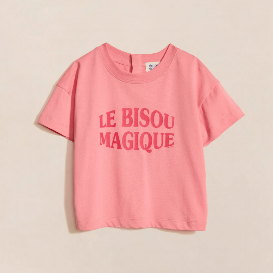 Ce tee-shirt en coton bio est parfait pour accompagner les minis au quotidien : léger, confortable et tout doux. Avec son imprimé exclusif Le bisou magique et sa jolie couleur rose, il devient vite un indispensable du dressing des petits. Sa coupe droite unisexe et ses pressions pratiques à l’épaule en font une pièce facile à enfiler et à porter. Fabriqué avec soin au Portugal, c’est un cadeau idéal à (s’)offrir
