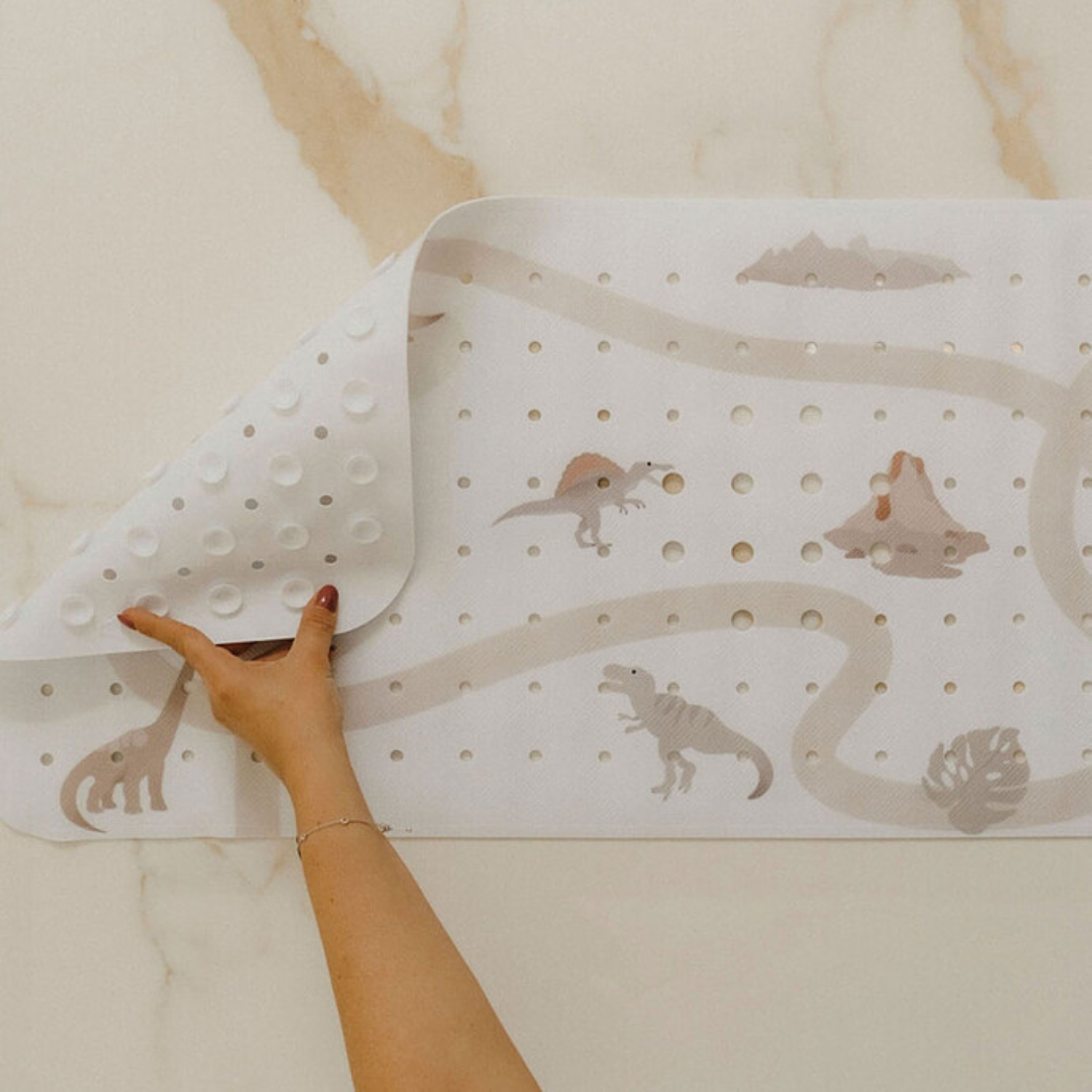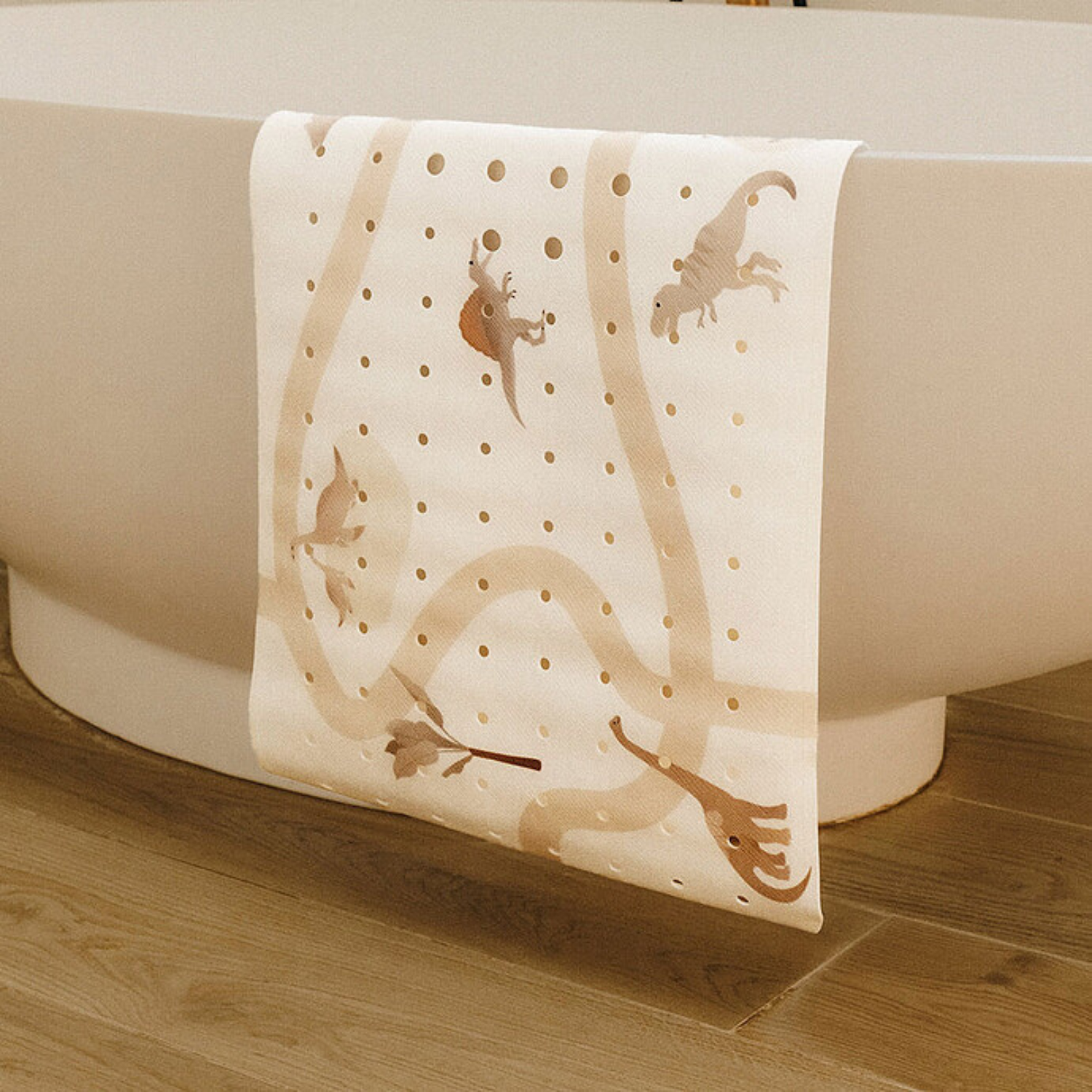 Transformez le bain en un moment ludique et sécurisé avec ce tapis antidérapant au motif périlleux… mais adorable donc rassurant ! Réalisé en collaboration avec l’influenceuse BabyAtoutPrix, il mélange sécurité, praticité et ambiance dino-rythmée.