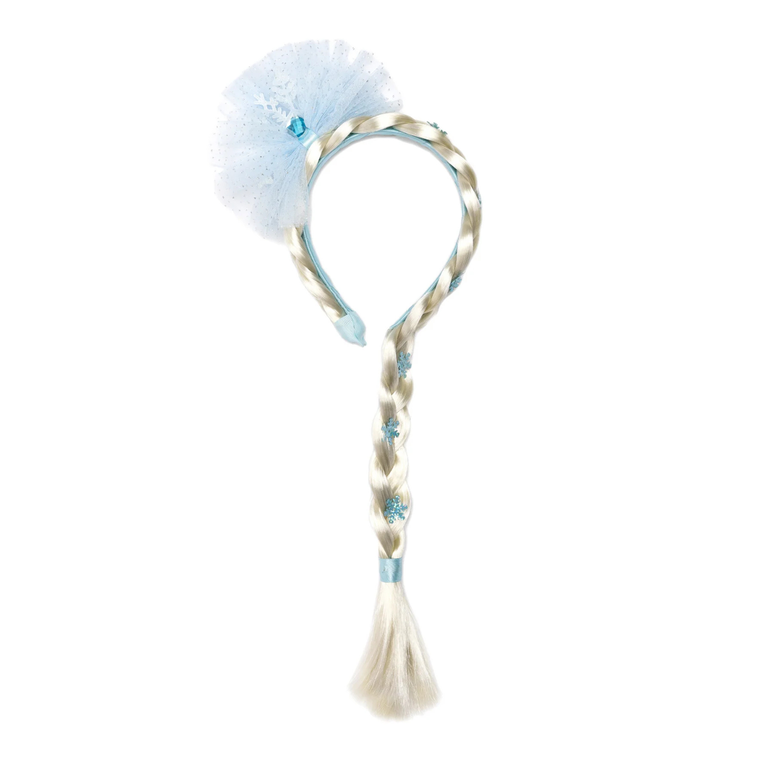 Une tresse magique à poser comme une couronne : ornée d’éclats de flocons scintillants sur une tresse blonde aux nuances bleutées, elle évoque la beauté fragile d’un paysage hivernal. Facile à enfiler, légère comme une brise gelée, elle invite à jouer les héroïnes des histoires enchantées et à briller dans l’imaginaire tendre des enfants.