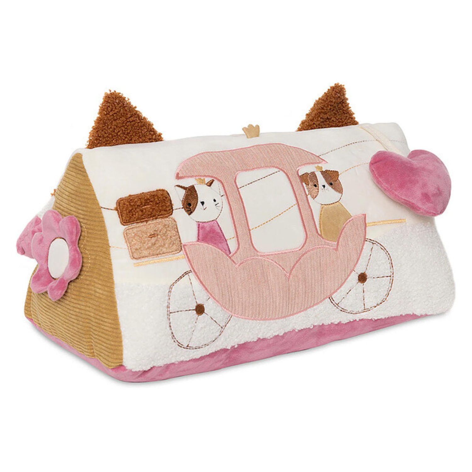 Ce triangle d’activités tout doux invite votre tout-petit à explorer, toucher et découvrir à son rythme. Conçu en tissu côtelé moelleux, il regorge de détails sensoriels : un grand miroir pour s’observer, une petite porte à ouvrir et un anneau de dentition à mordiller.