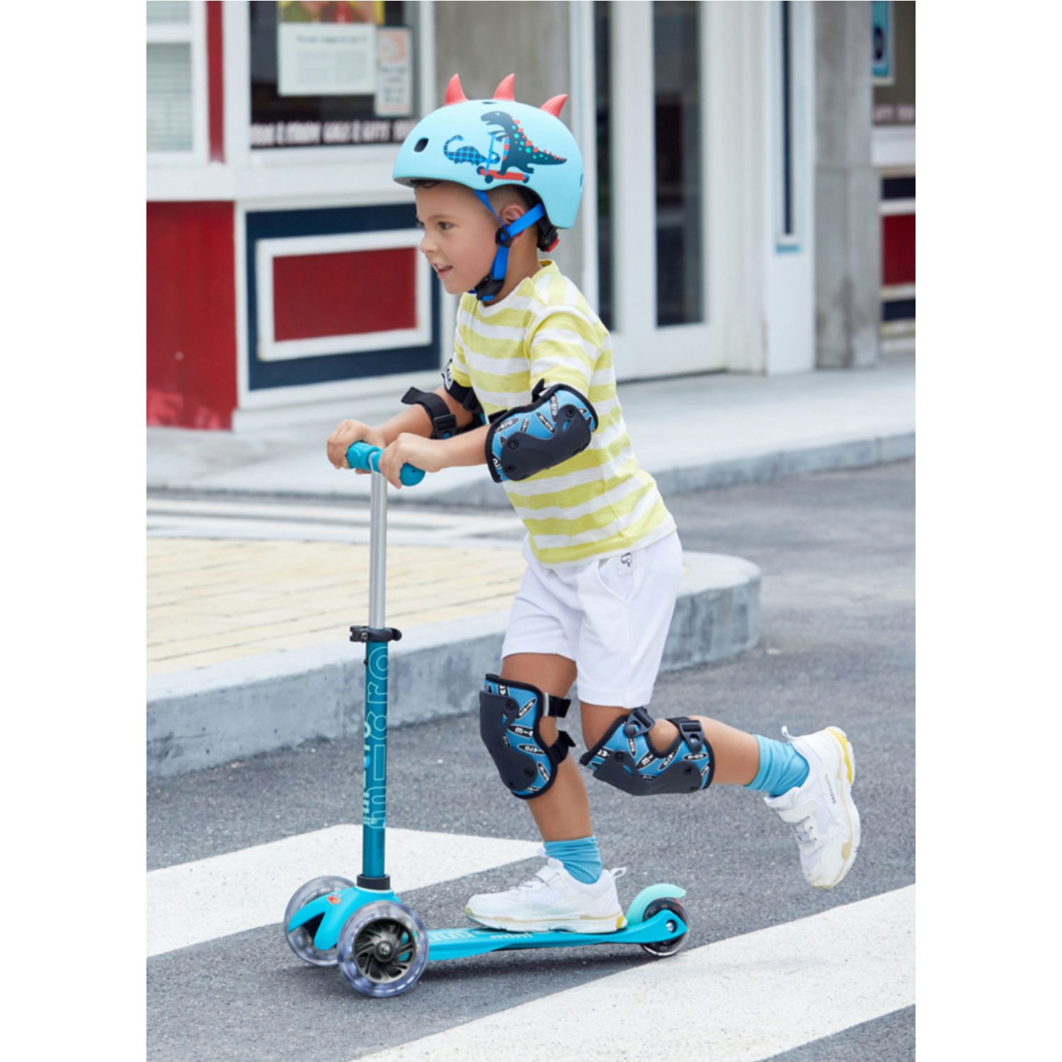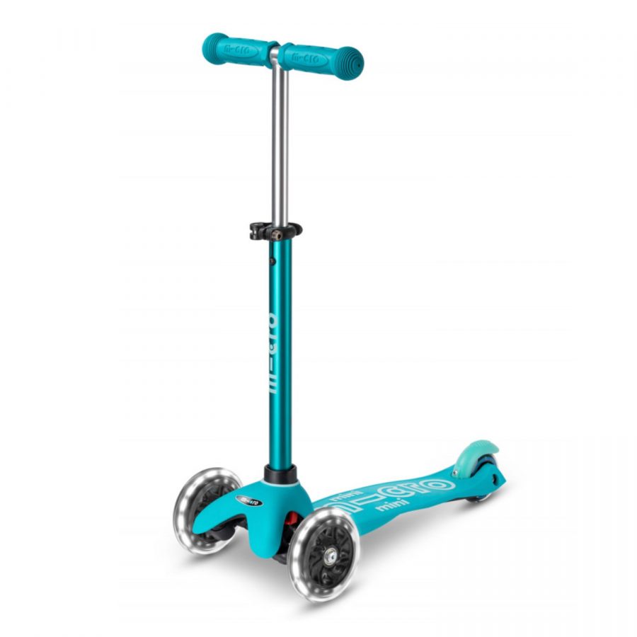 Une trottinette stable, fun et lumineuse pour accompagner les premières virées en extérieur ! La Mini Micro Deluxe Aqua LED a été pensée pour les enfants dès 2 ans : trois roues pour une stabilité optimale, une direction intuitive par transfert de poids (on se penche, ça tourne) et un guidon ajustable qui suit votre enfant au fil des mois.