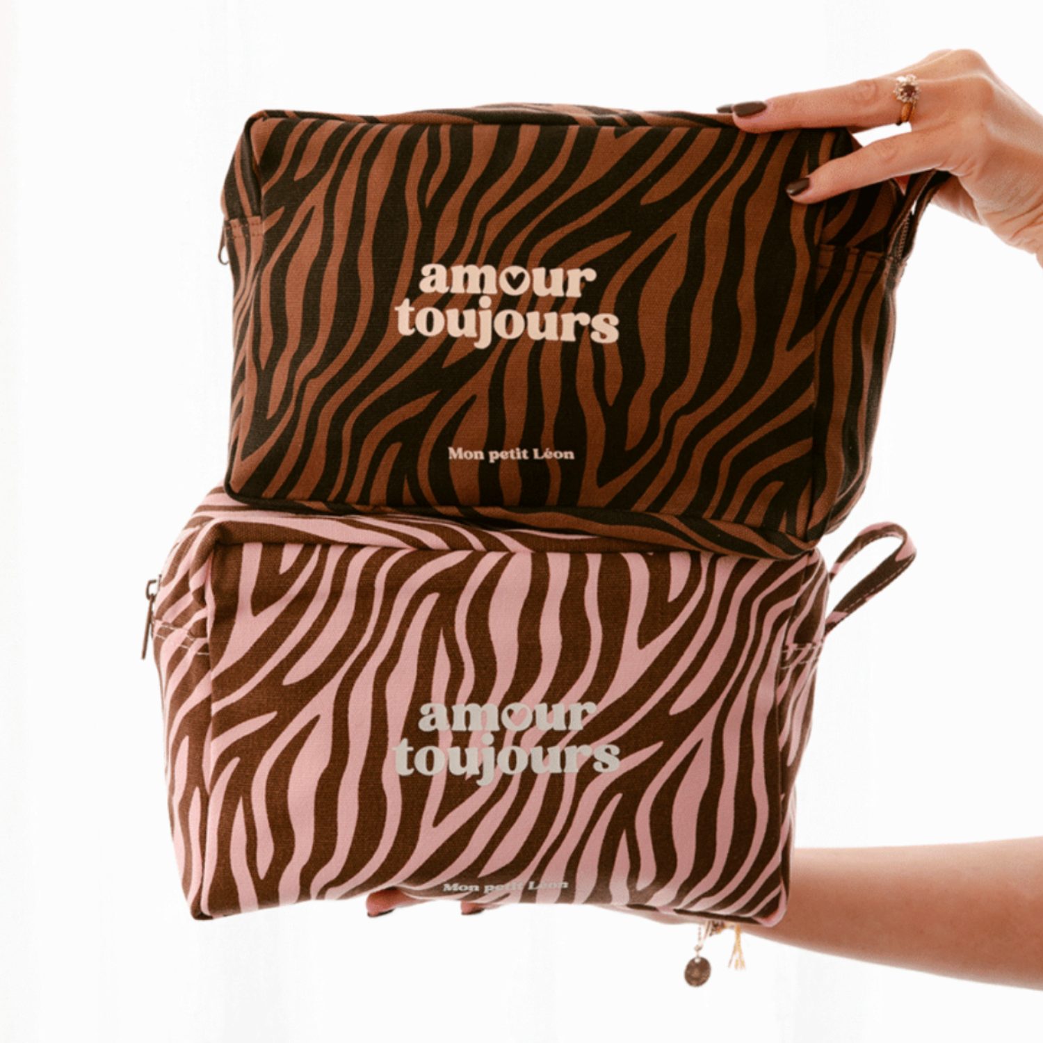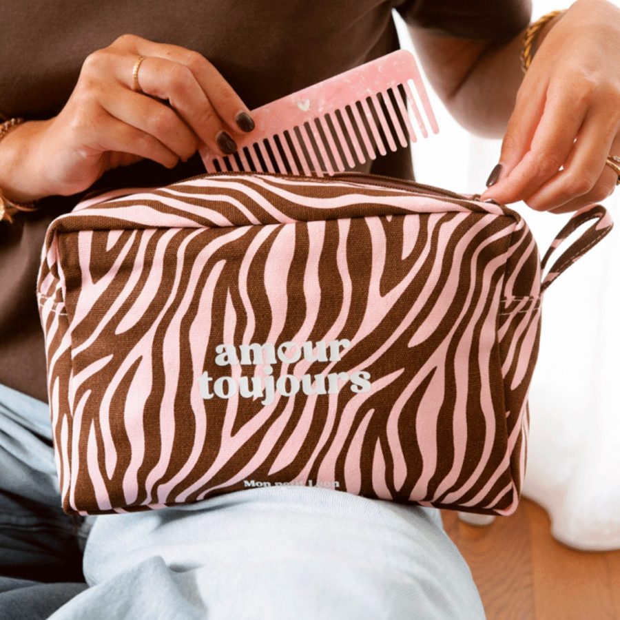 Trousse de toilette zèbre rose Amour toujours